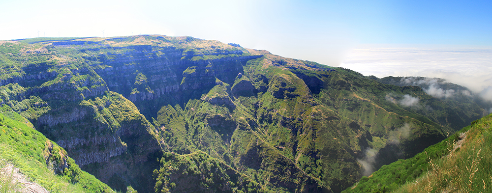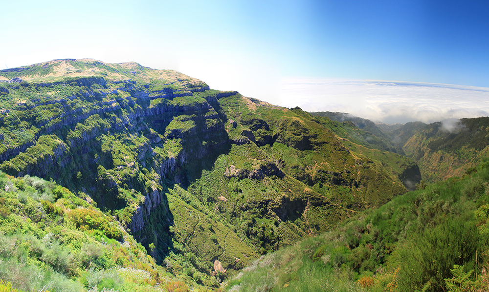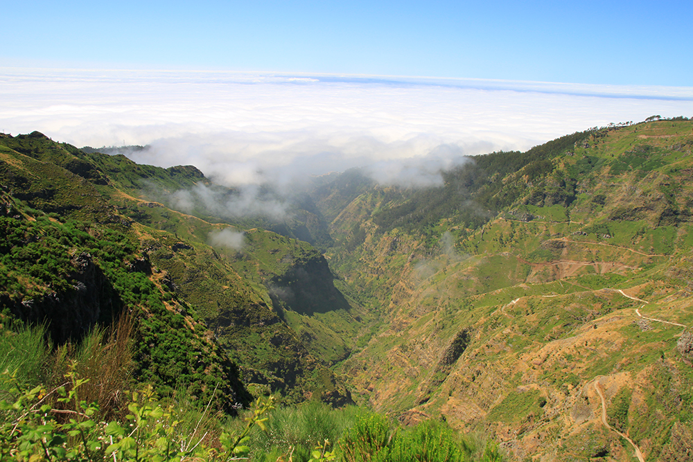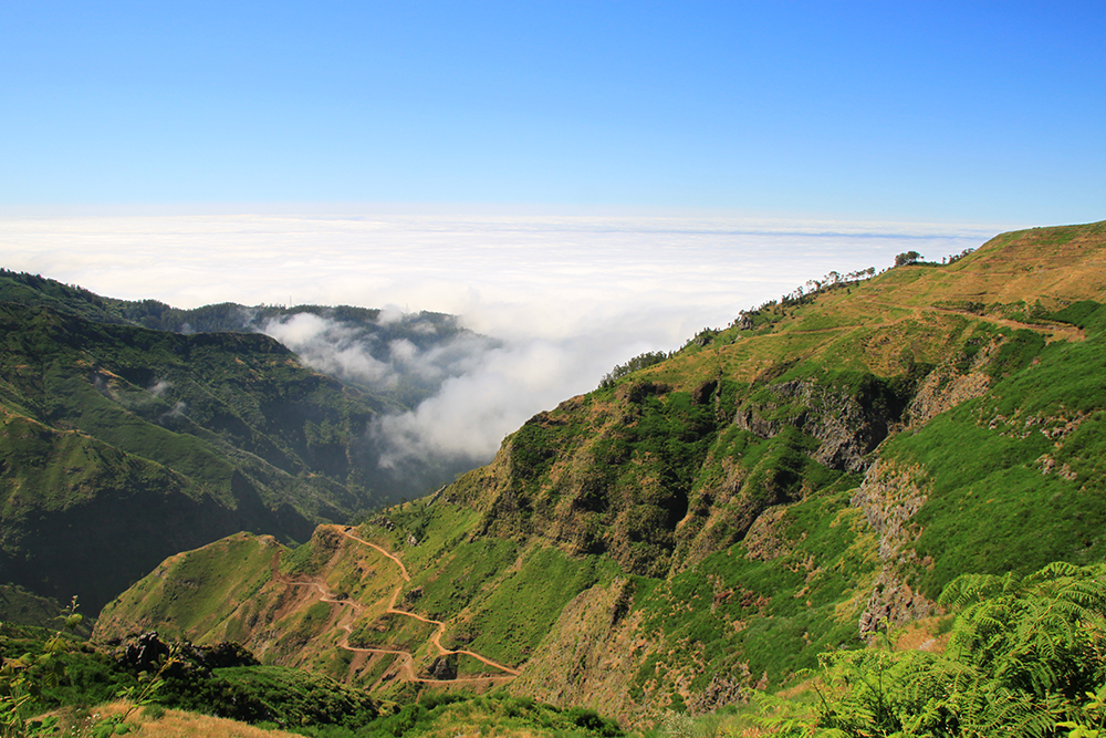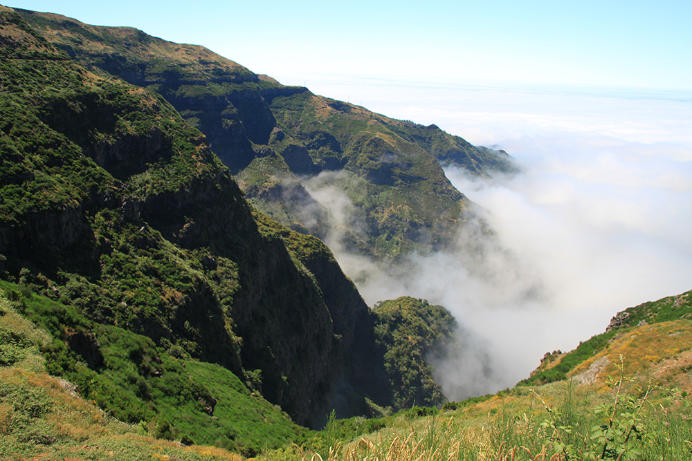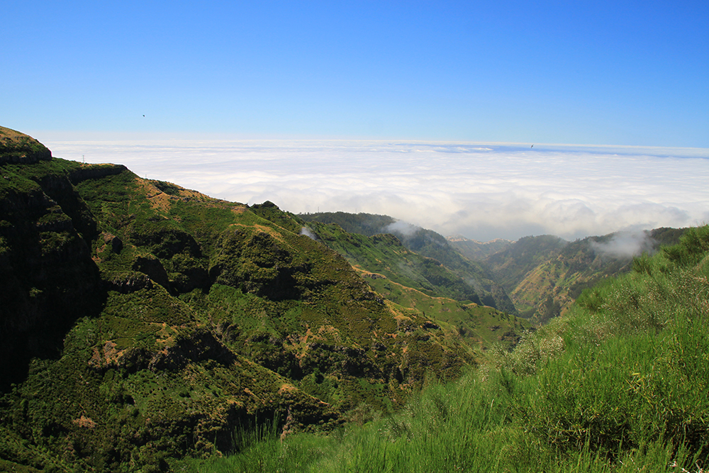 Однако по дороге стало понятно, что весь остальной остров прячется в облаках, а на севере еще и туман. Но в центре в горах над облаками солнце. Посмотрев на мутный серый север, мы быстро придумали план Б и развернулись обратно к леваде ду Пауль.