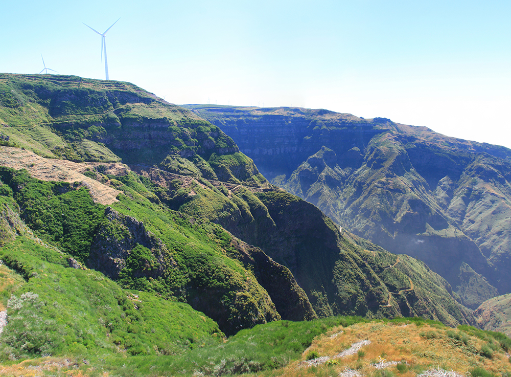 Сперва на леваде ду Пауль немного скучновато, идешь по лысому склону, а сверху гудят ветряки. Это редкий случай полностью открытой левады.