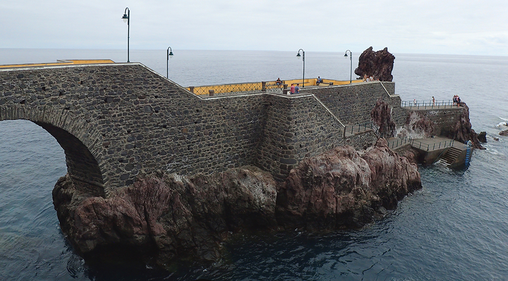 А тут на остатках лавы построили мост и лестницы в воду, для тихой погоды.