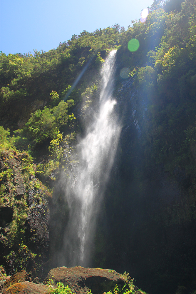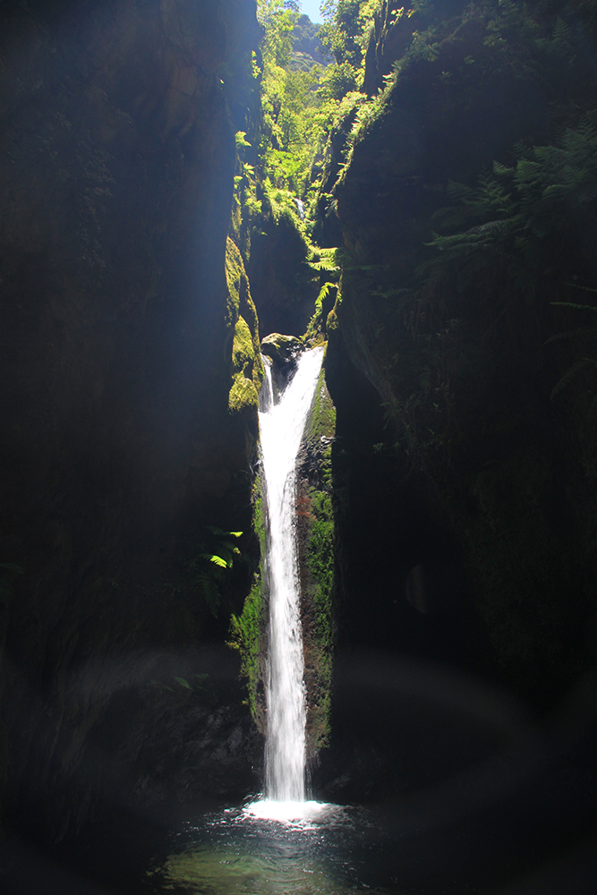 Когда проходили Кальдейран Инферно, застали редкую картину: лучи солнца точно попали на водопад: