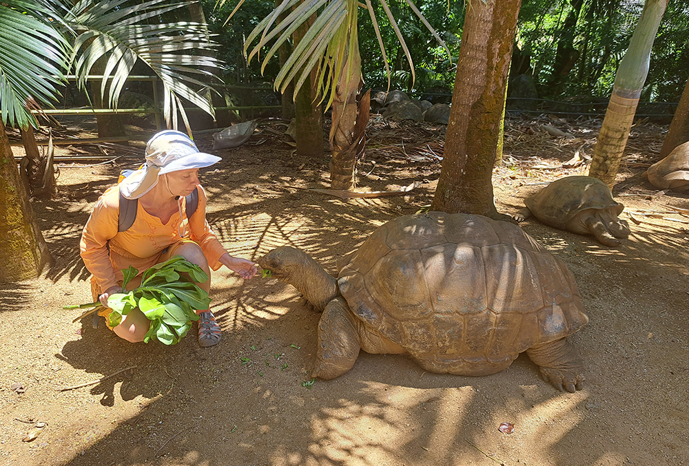С сейшельскими черепахами тут можно пообщаться и покормить их.