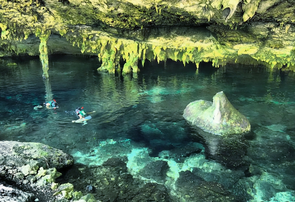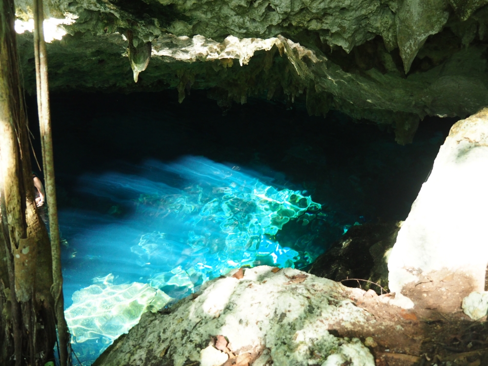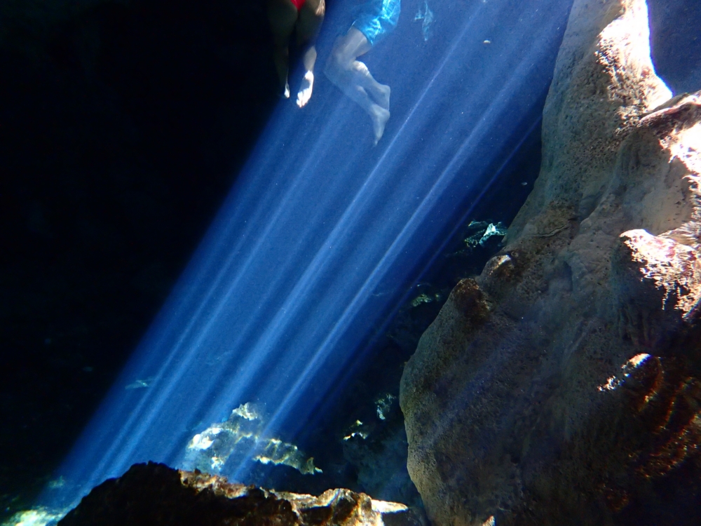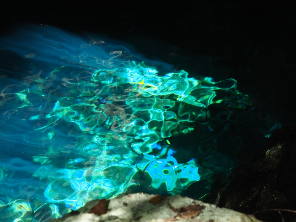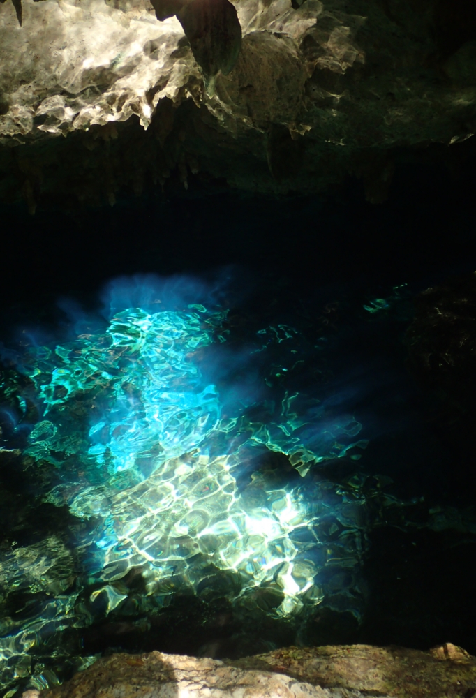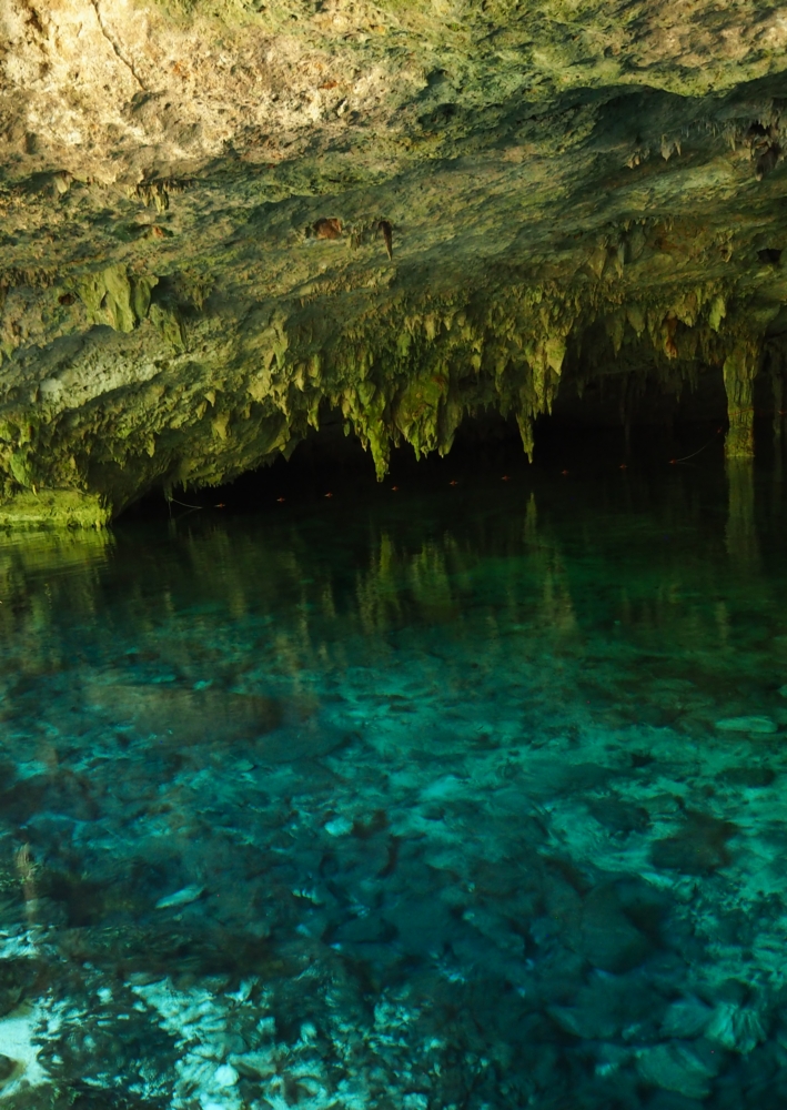 Фотографии под водой снимала я на свой Олимпус. А над водой в таких местах хорошо получалось снимать у Тиночки: фотик у нее более светочувствительный, в пещерных сенотах без него вообще было бы грустно.