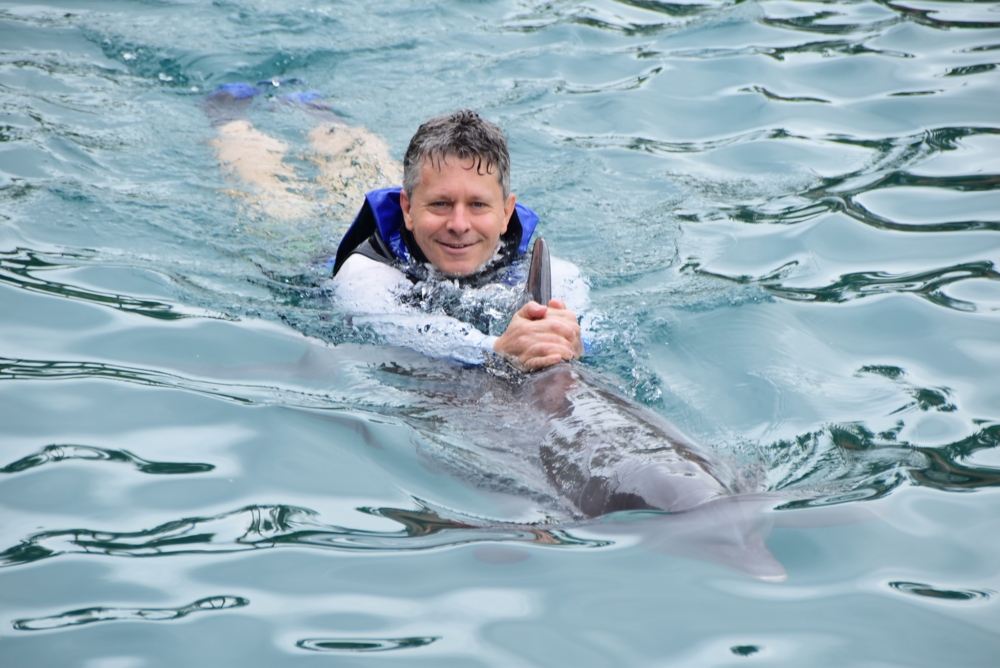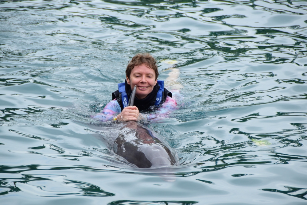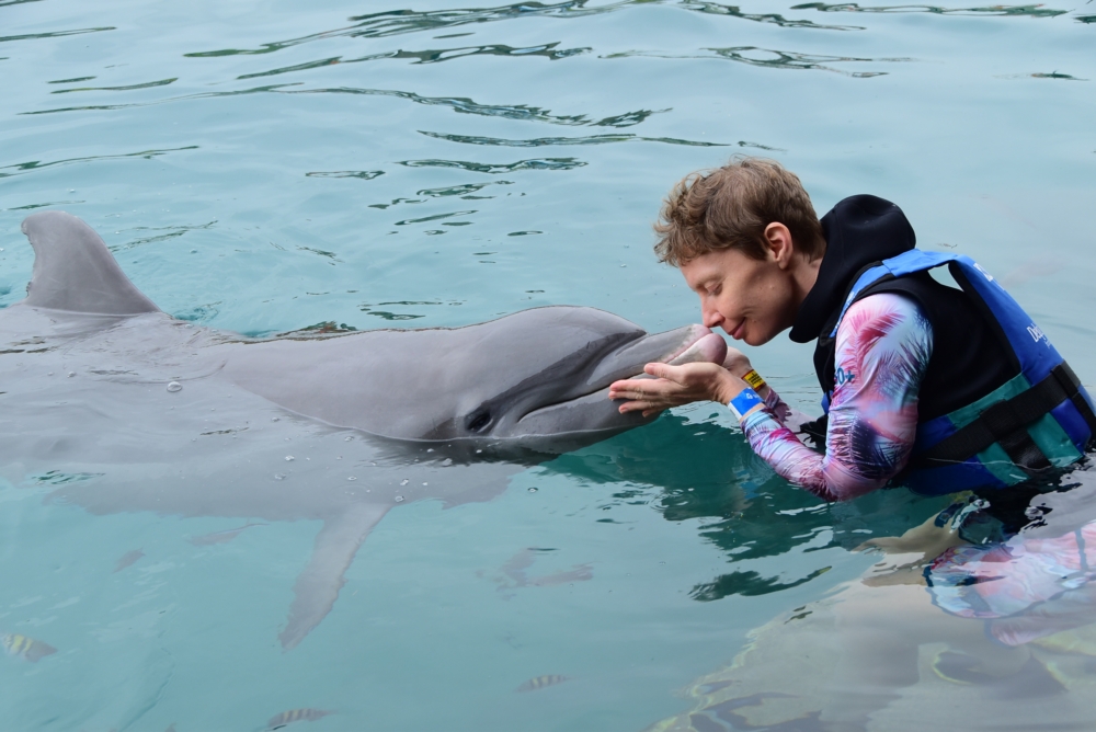 В парке существует некоторое количество дополнительных программ, за которые надо отдельно платить. Мы очень хотели к дельфинам. Как-то так вышло, что раньше нам не удавалось с ними поплавать (хотя в Новой Зеландии мы пытались), их потрогать и обнять. И вот, наконец, настал день, когда можно было исправить такое упущение.