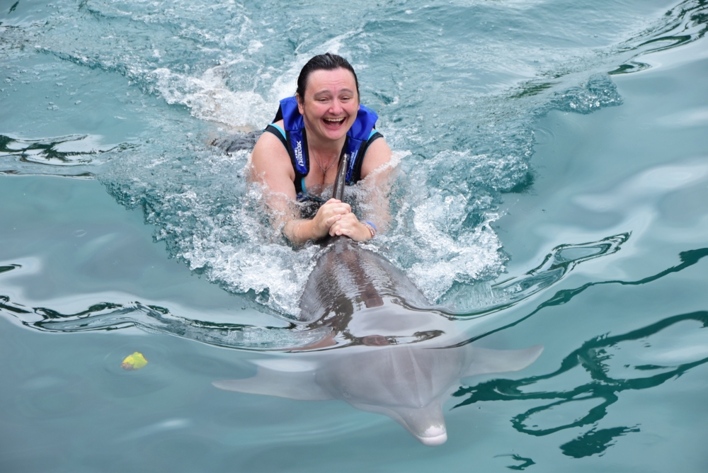 Если дельфин что-то не хочет делать, его не заставляют, а немного ждут или меняют местами программу. Вот, например, покатать нас захотели не сразу. Но потом милостиво согласились.