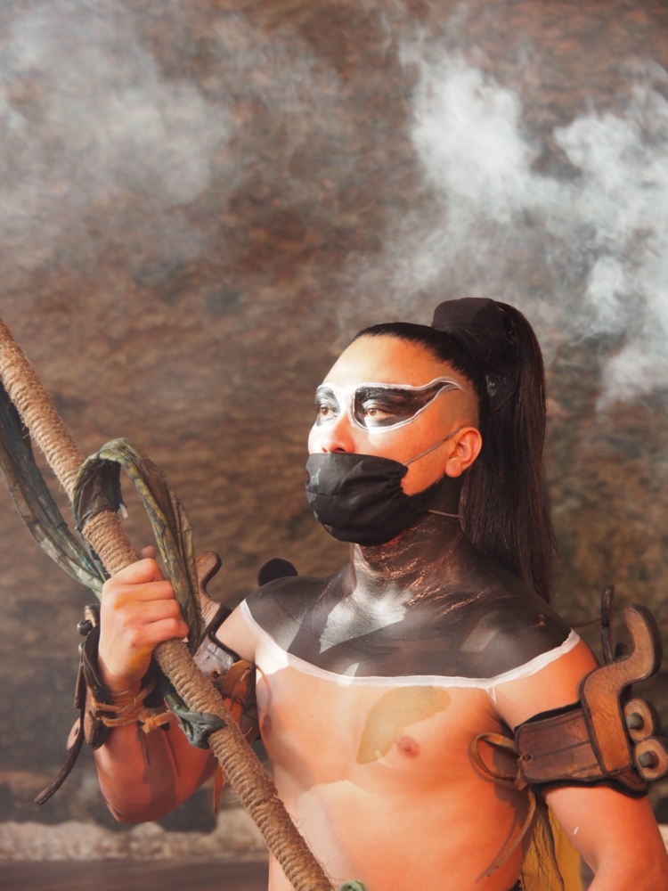 Вы уже, наверное, обратили внимание, что артисты в масках. Ковидные маски в обычной жизни воспринимаются как уродство, насилие и на них больно смотреть. Но создателям шоу как-то удалось вписать их в общую эстетику, чтобы они перестали выражать то, что обычно выражают, а стали органичным элементом костюма.