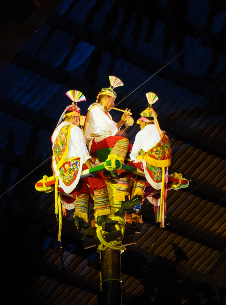 Воладорес, «летуны». Они сидят на высоком шесте, привязанные верёвками за ноги.