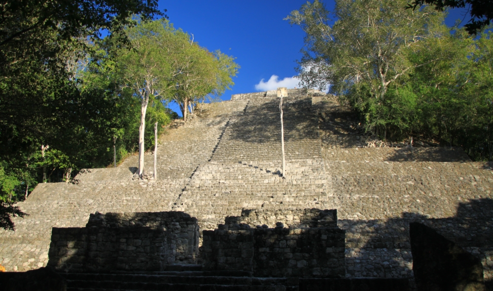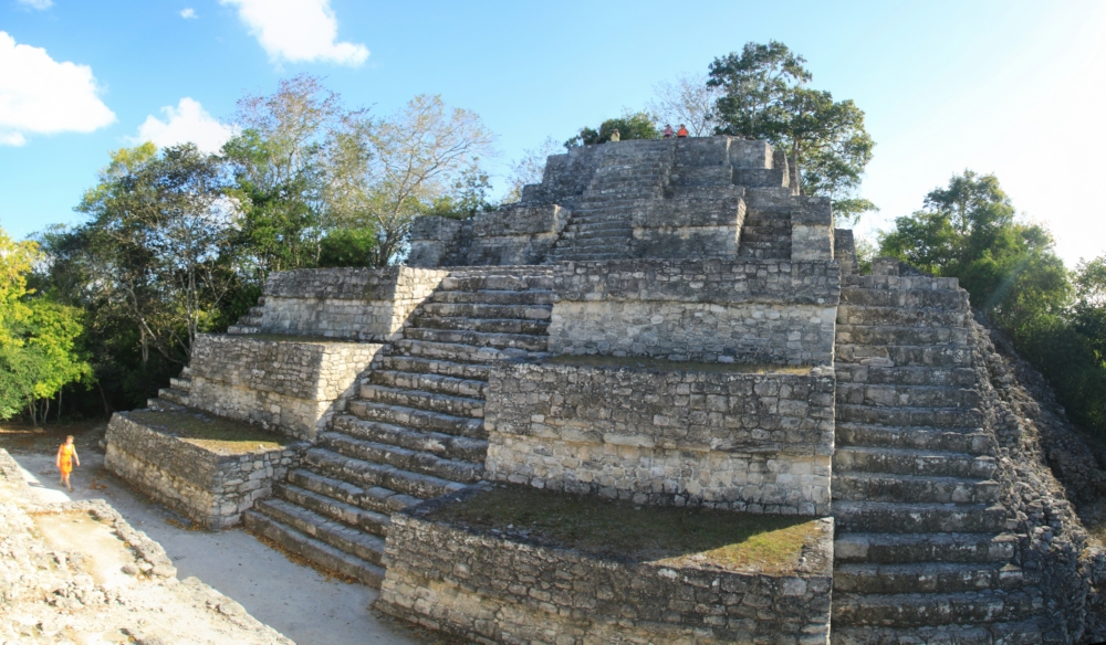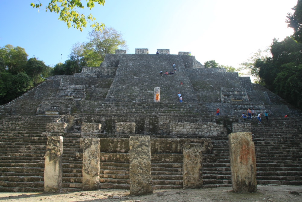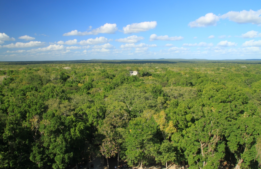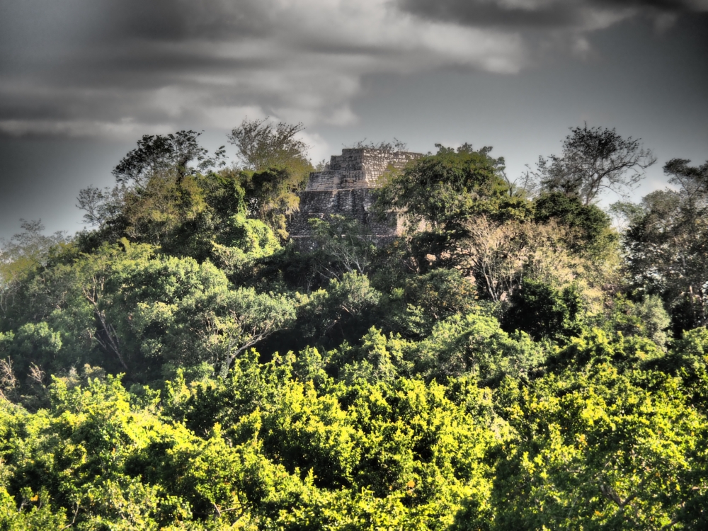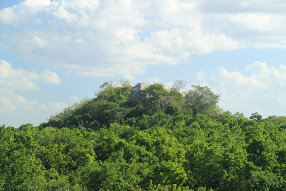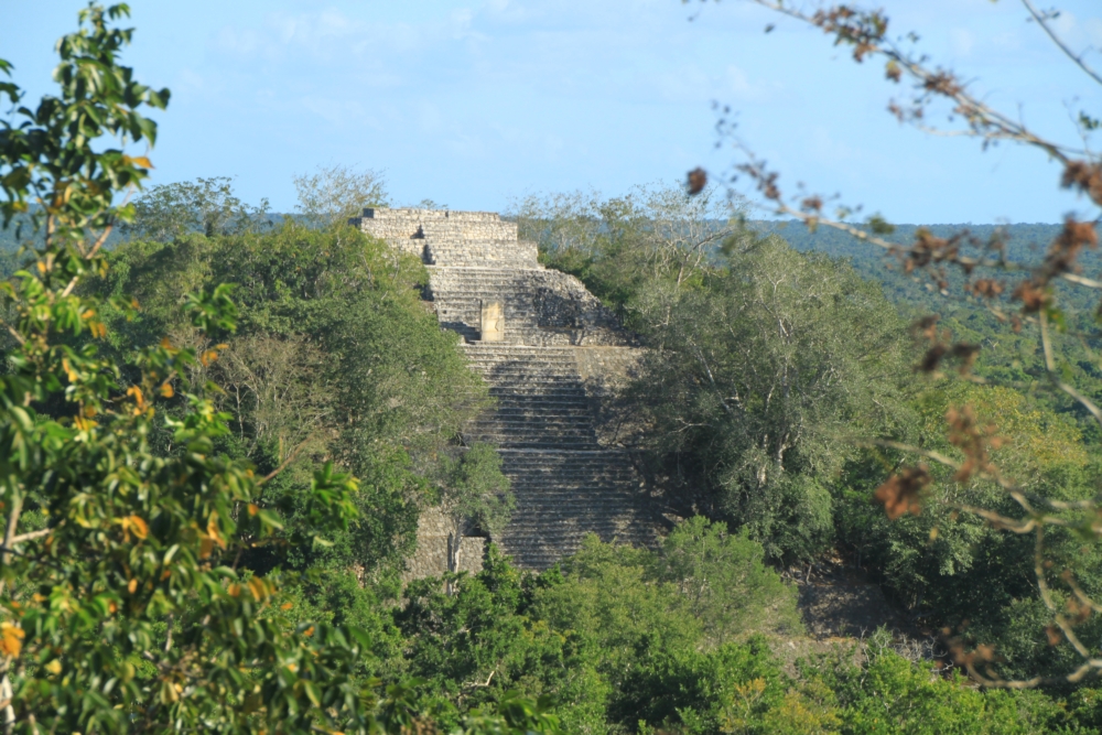 Выбравшись из одного маянского города, мы решили, что в этот же день успеем съездить во второй. В Калакмуль от трассы ведет узкая извилистая лесная дорога длиной в 60 км, и мы сомневались в ее качестве. Однако она оказалась полностью асфальтовой, так что мы все-таки добрались туда и не пожалели. Этот город оказался лучшим из увиденных.