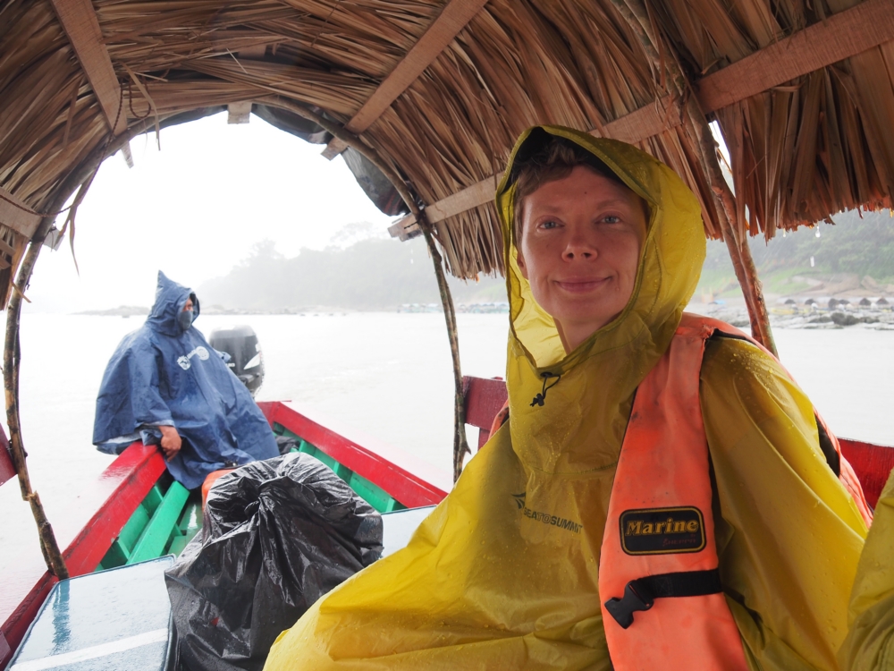 Под дождем погрузились в лодку. Тяжелее всего было ехать на лодке, ветер и дождь в лицо около часа непрерывно.