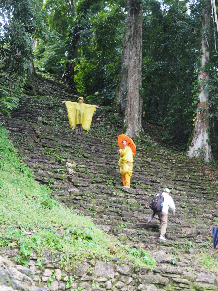 Я возлагала на древний город Яшчилан большие надежды, но тут вмешалась погода. Внезапно пошел дождь и шел он весь день, выпало больше 100 мм осадков. Так что мы на своей шкуре прочувствовали, почему штат Чьяпас такой зеленый. Свой колорит в этом путешествии, несомненно, был. Но дождь заставил нас превозмогать.