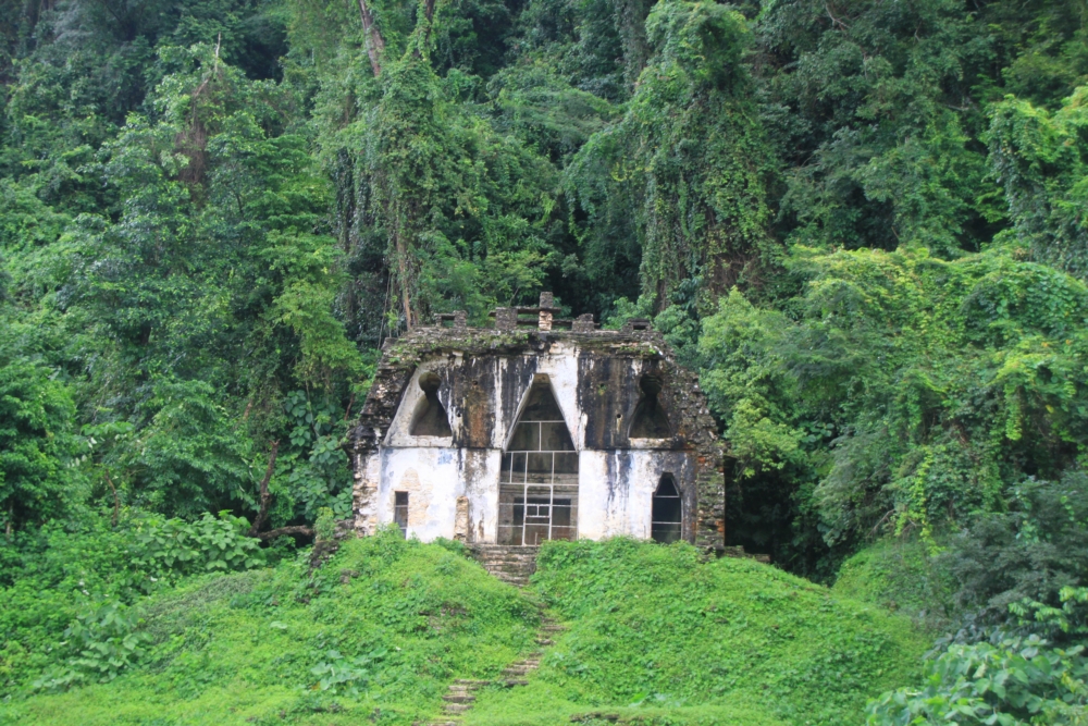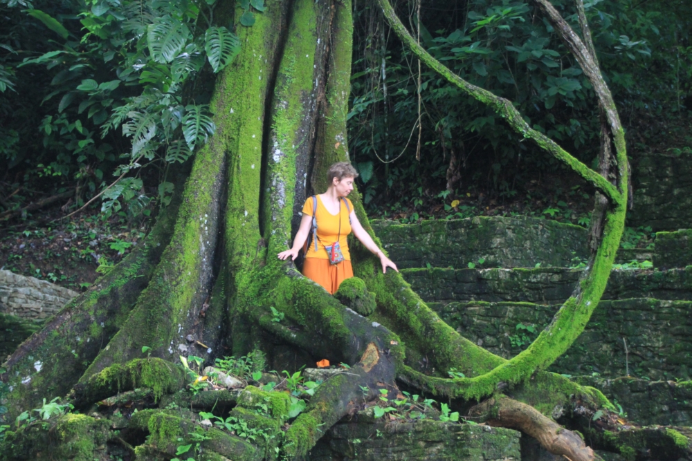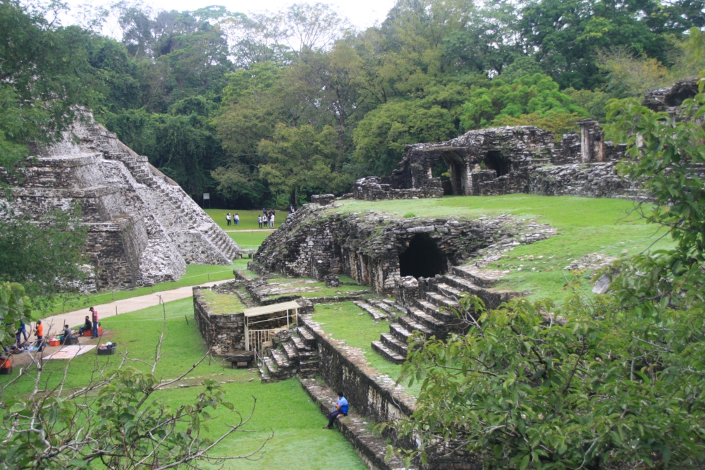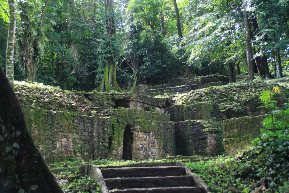 Вокруг города такие же пышные и зеленые джунгли, как в Яшчилане. Вообще-то тут недалеко. Города были соперниками и воевали между собой.
