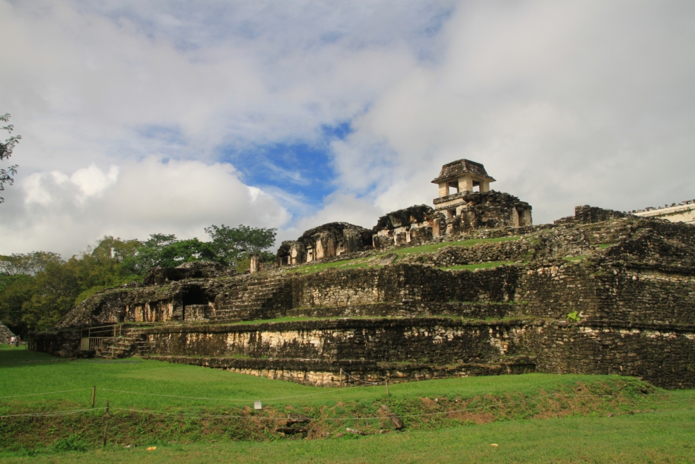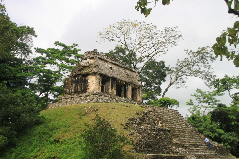 На следующий день хляби небесные заткнулись, но сперва было пасмурно. Мы неспешно позавтракали, приготовив еду прямо на плитке в комнате, и поехали из Паленке современного в древний город Паленке, то есть в маянский археологический комплекс. Для входа надо купить два билета на человека, что-то типа 93 песо и 85 песо.