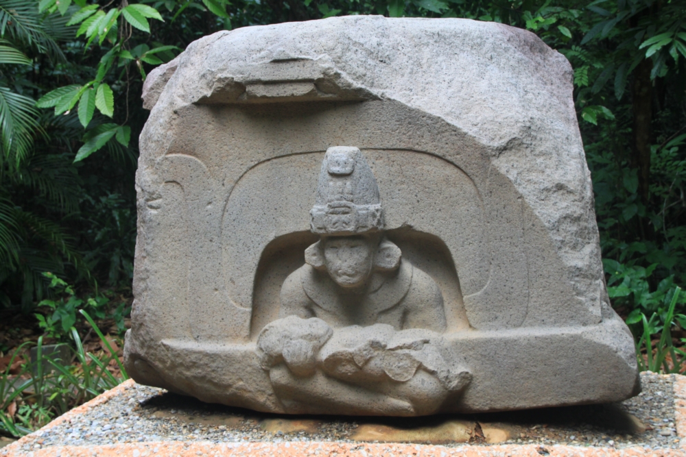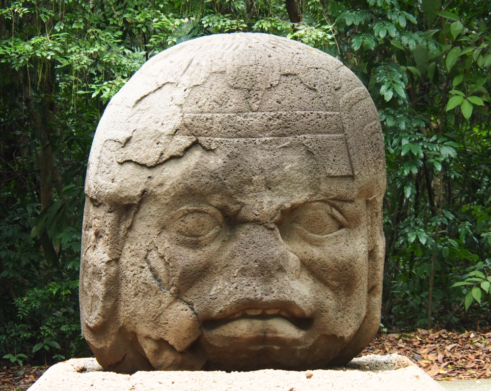 Ольмеки — древняя мезоамериканская цивилизация, самые впечатляющие ее артефакты — гигантские головы. Головы вырезаны из вулканического базальта, поэтому они очень тяжелые. Их вес — 25-55 тонн. Как ольмеки их ворочали — загадка. Ольмеки тоже играли в мяч, головы изображают либо правителей, либо игроков, никто уже не знает.
