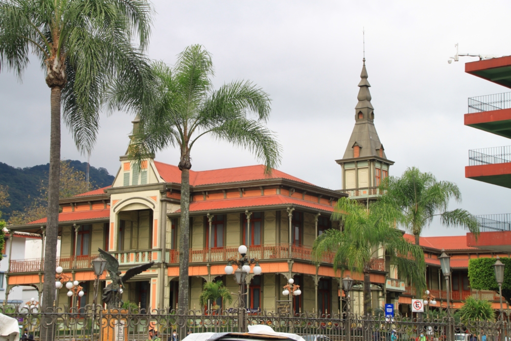 В городе Орисаба вышли погулять. Вокруг красивые зеленые горы, но видимость была плохая. Вулкан мы не увидели. Зато увидели Железный дворец Эйфеля.