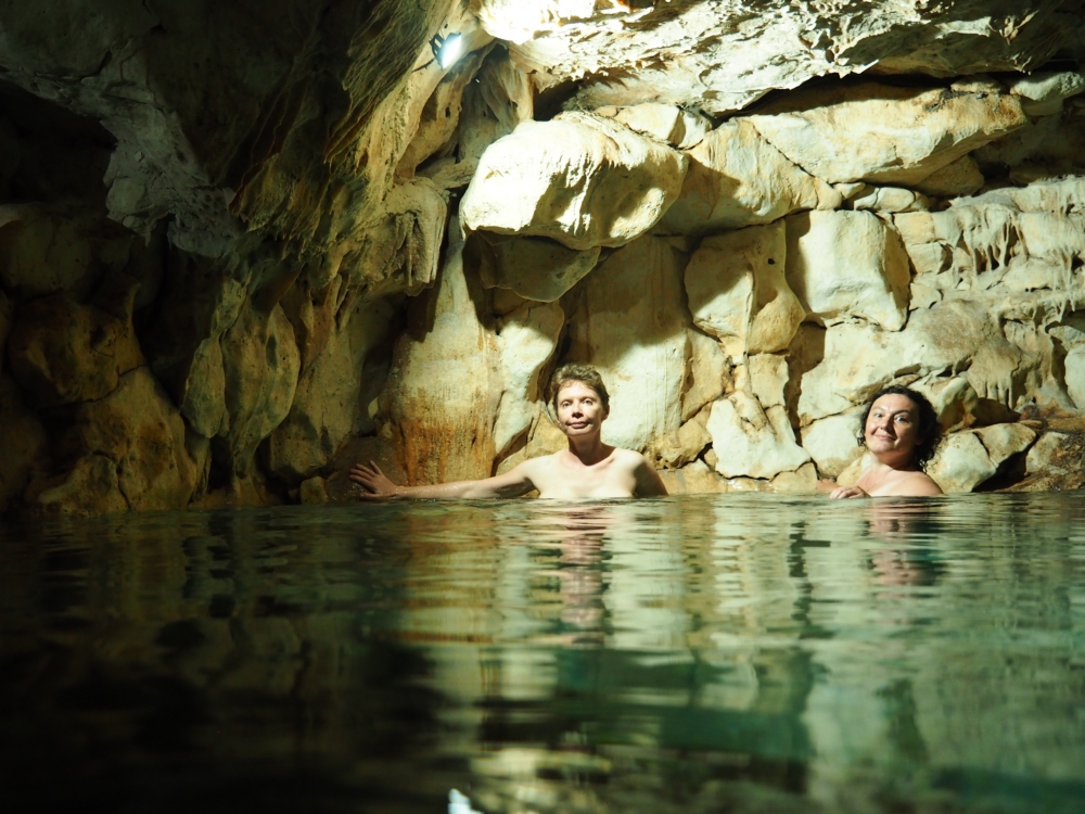 Ее фотоаппарат в темноте снимает лучше наших. Вот такой тихий и милый сенот.