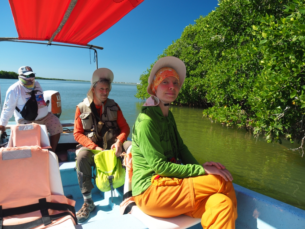 В Рио Лагартос, стоит запарковать машину, как сразу вырисовываются лодочники. Они без особых возражений соглашаются на 1000 песо за лодку.