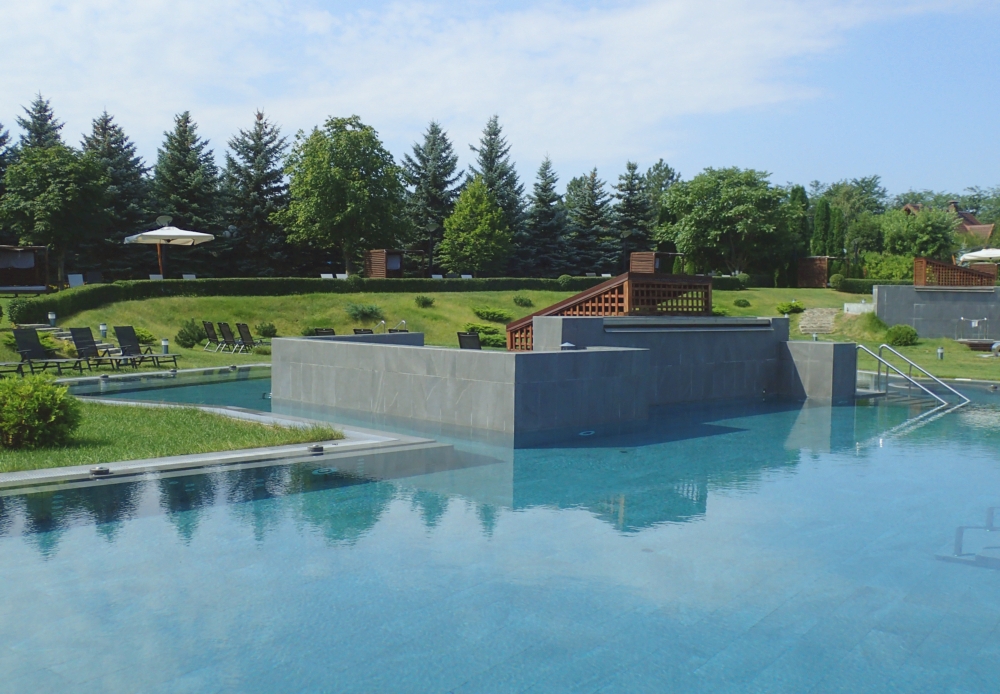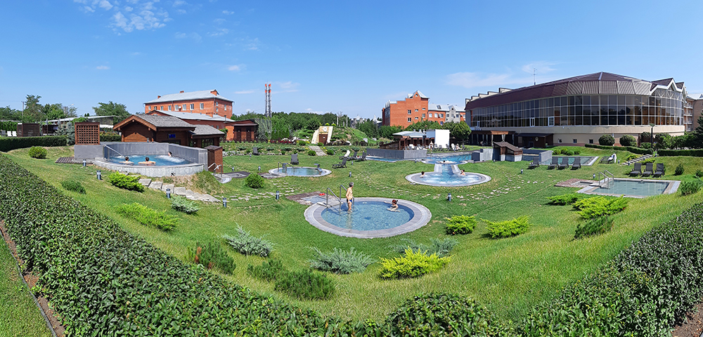 Добротный термальный бассейн в исландском стиле. Лучше всего там в прохладную погоду, потому что вода довольно горячая. Работает с 10:00, бассейны большие, места всем хватает. Безлимитный вход стоит 700 р, разовое посещение на 90 минут — 400 р, и его нам хватило. Общих бассейнов пять, один крытый, четыре на открытом воздухе. Самый большой и востребованный 38 градусов, есть холодный (температуры воздуха), и два очень горячих 42-43 градуса. Один просто огромный, но купаться в нем мало кто может.