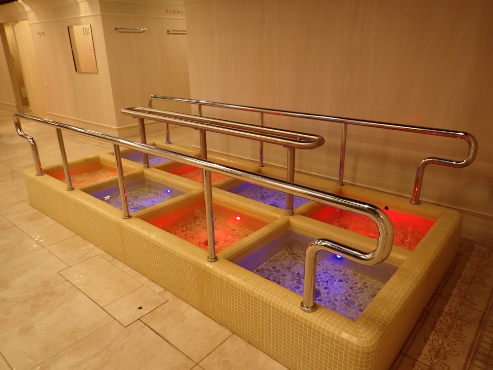 Дорожка Кнейпа. Тут чередуются ванночки с горячей и холодной водой, плюс массирующий рельеф на дне.