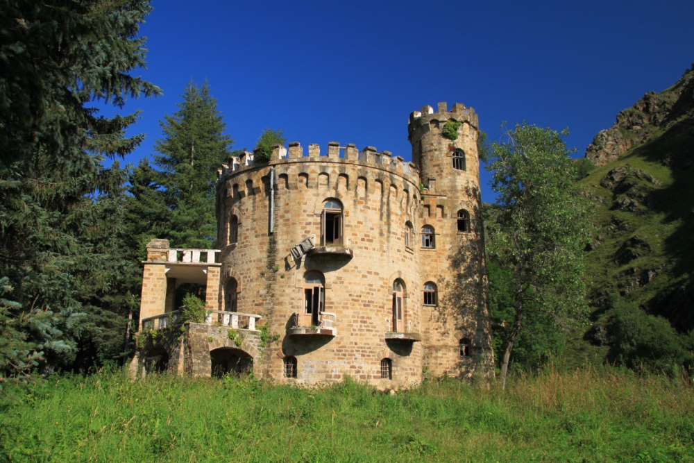 Он построен в начале 20 века, некоторое время был пионерским лагерем, а сейчас заброшен.