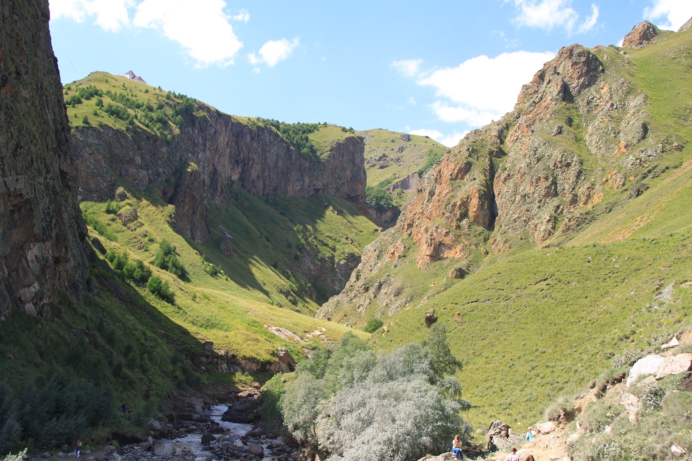 Тут делают две остановки: от первой надо пройти километр к водопаду, ну и на ущелье заодно поглядеть. Если вы на своей машине, которая по грунтам не ездит, то два километра в один конец надо пройти.