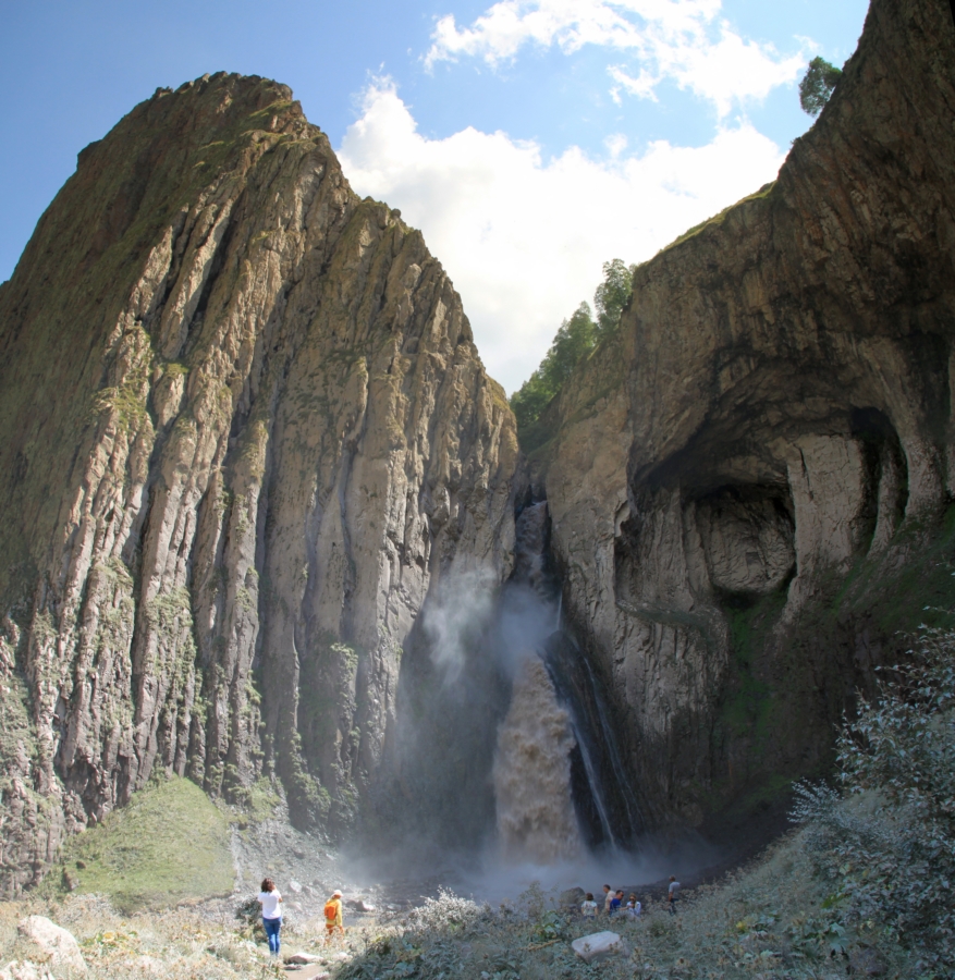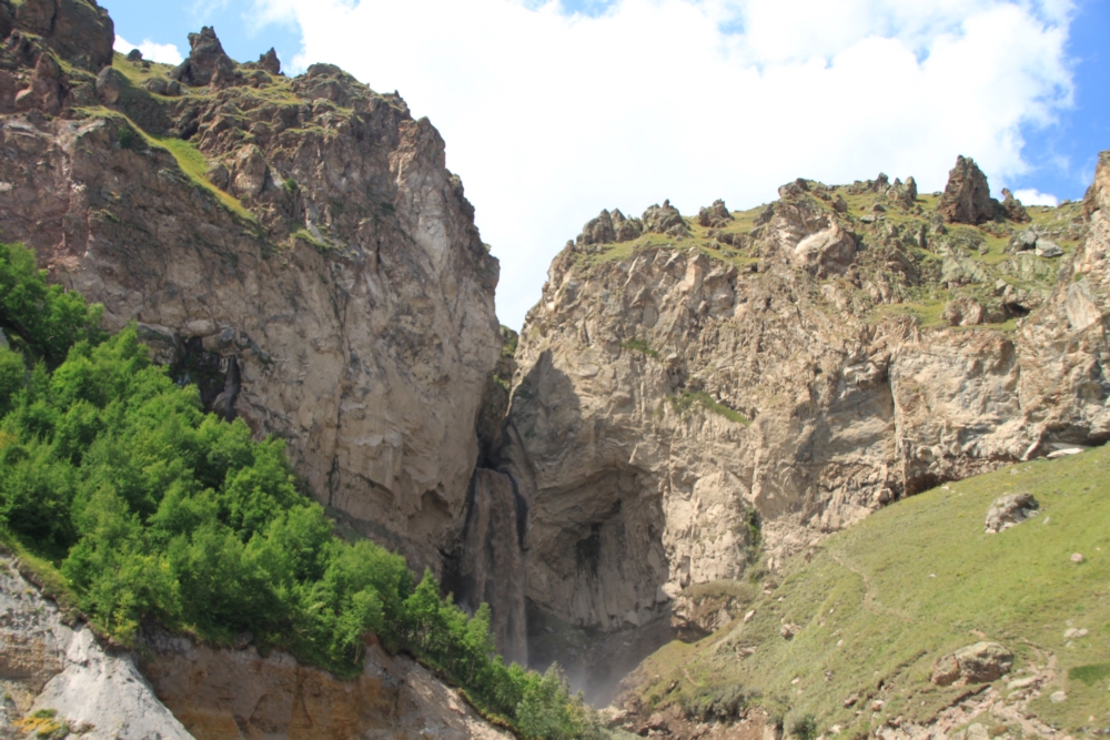 Водопады на Кавказе не очень, это я еще по Приэльбрусью помню. Никакой тебе прозрачной чистой воды — глина с камнями с ледника. Но очень мощные.