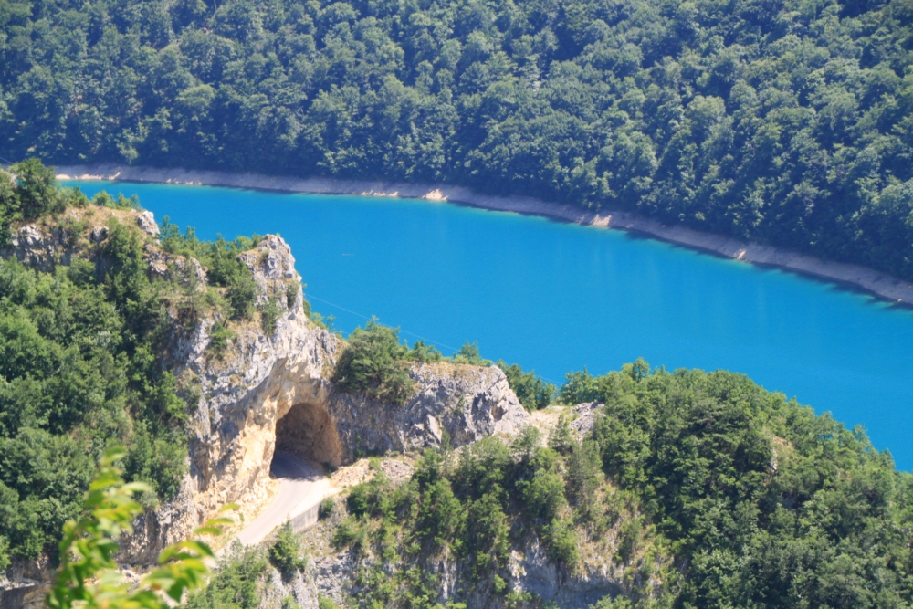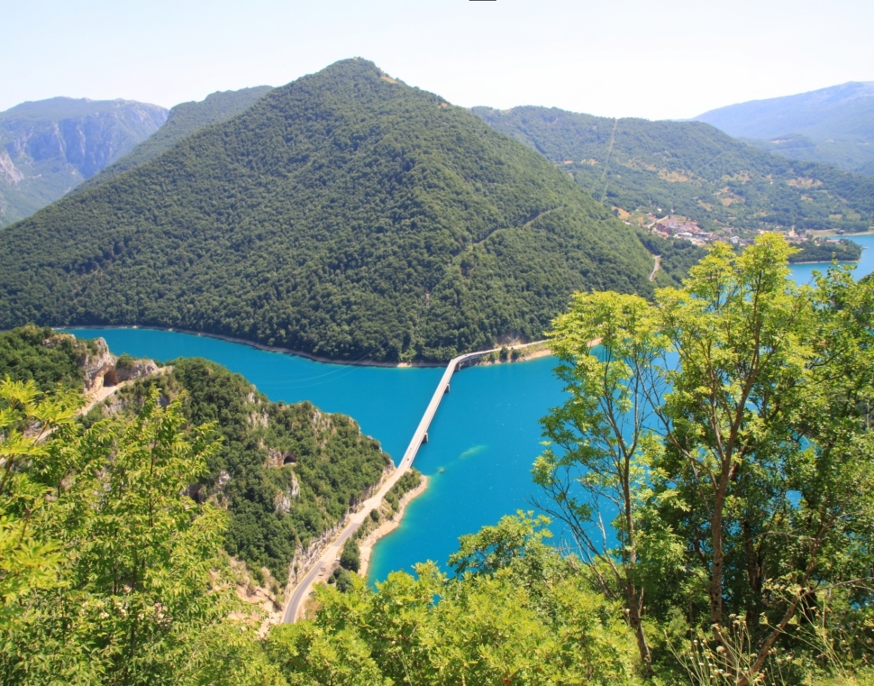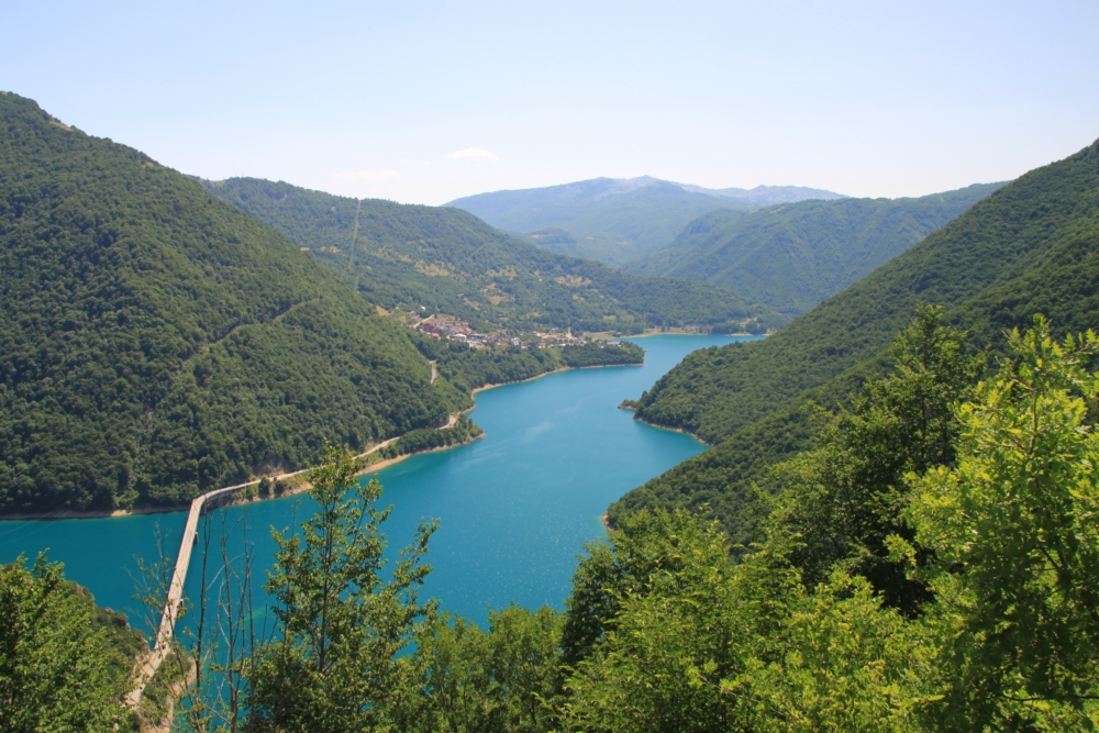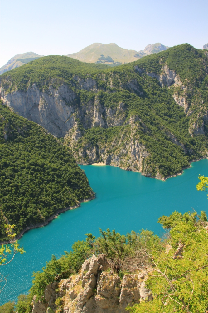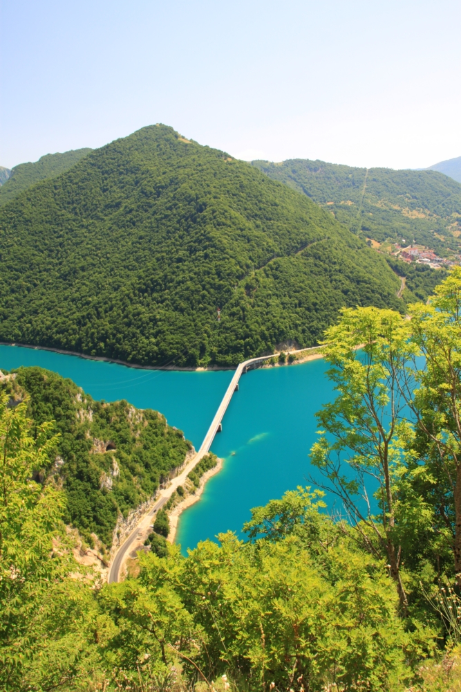 Уже тут видно, что берега насыпные. На самом деле, это искусственное озеро. Реку Пива запрудили в в 70-х годах прошлого века, построив на ней огромную плотину Мратине. Говорят, чуть ли не самая большая в Европе, 220 метров. Мы там не были.