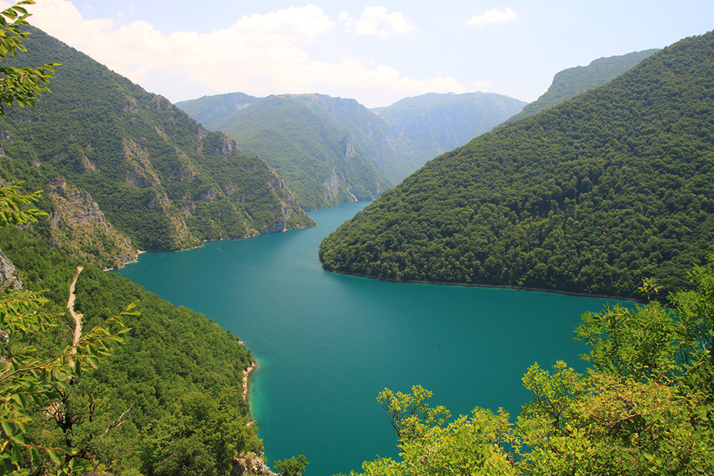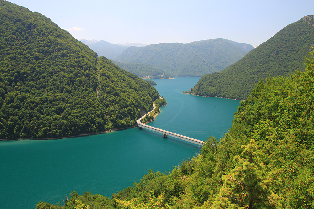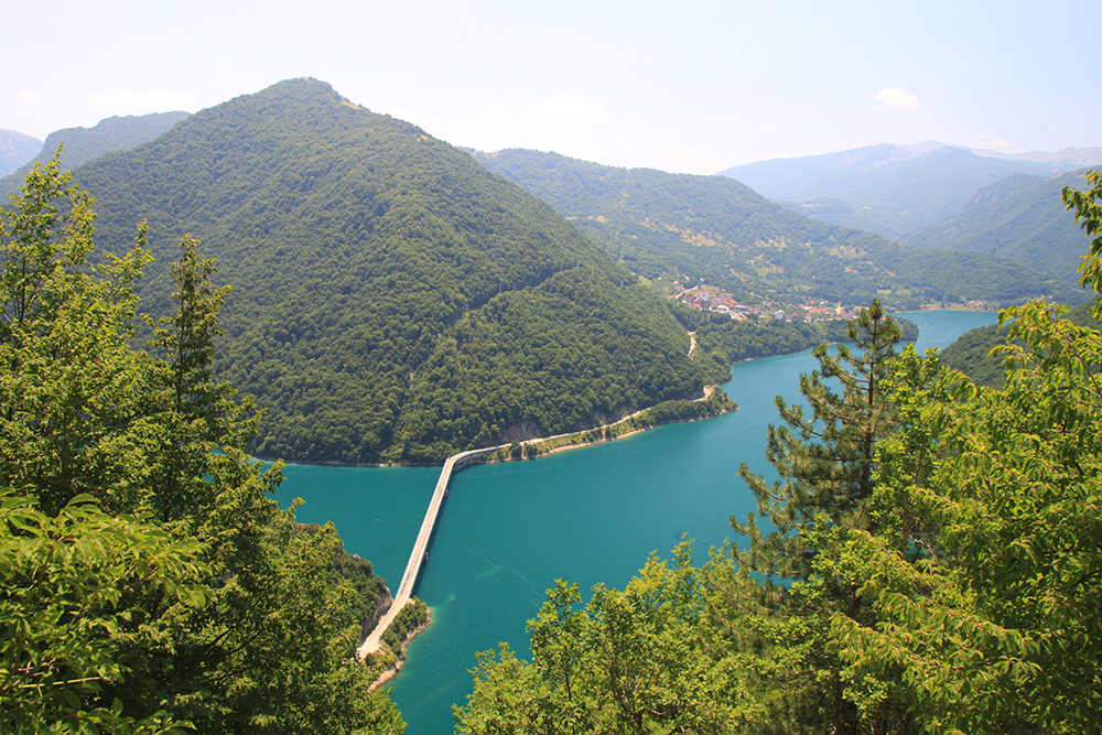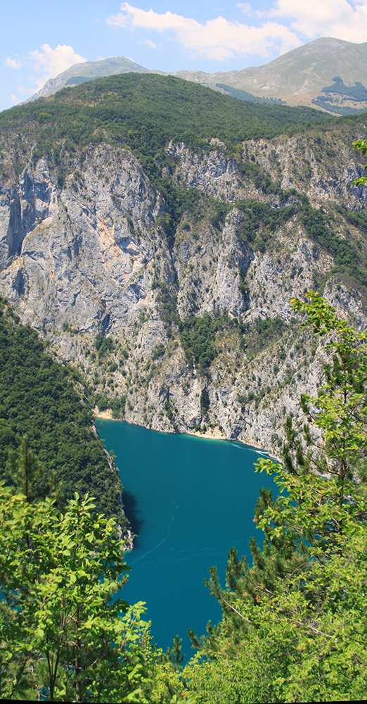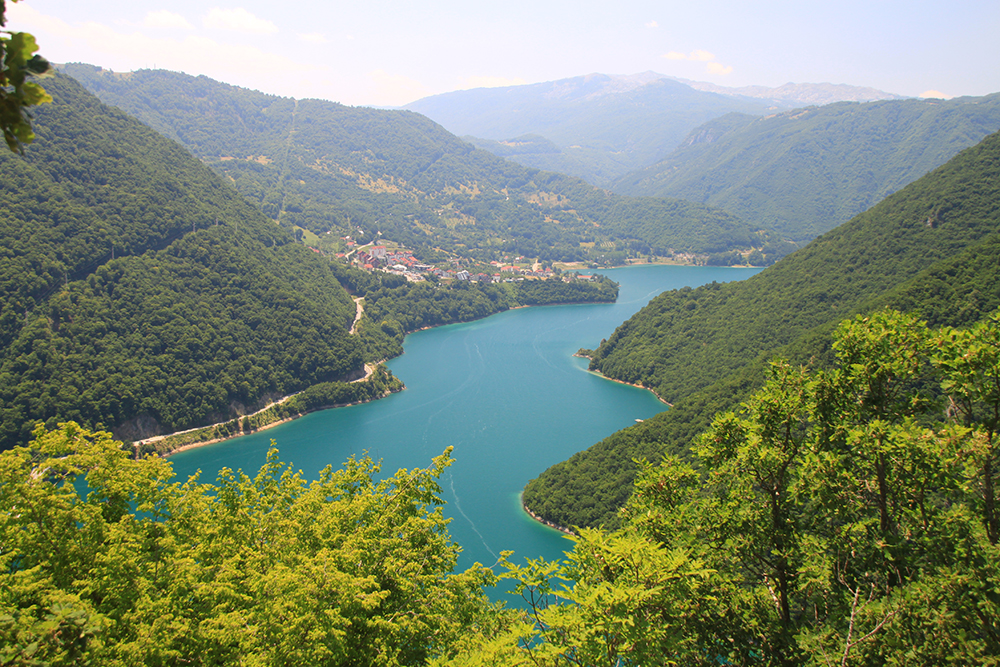 И вот мы спустились по серпантину и стало видно Пивское озеро.