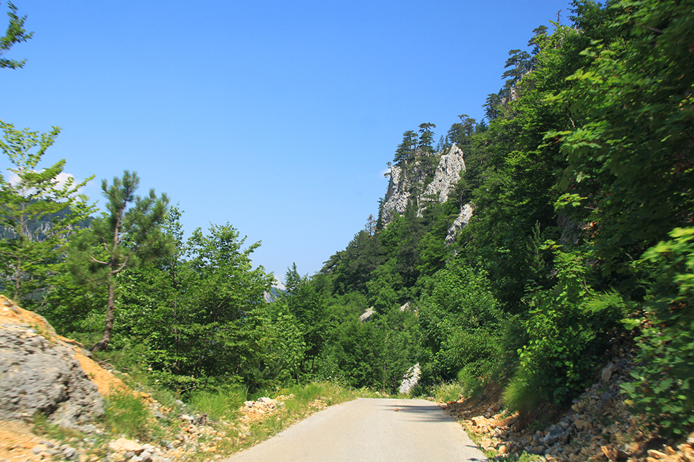 Мы потихоньку ехали на Пивское озеро по нижней дороге, мимо пика Чуревац.