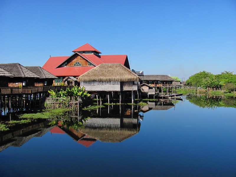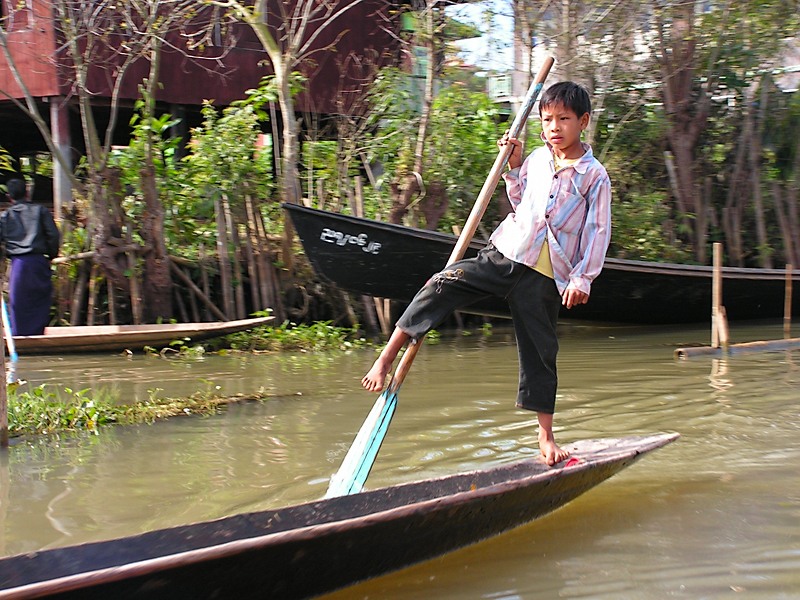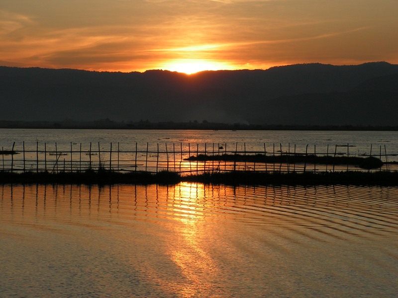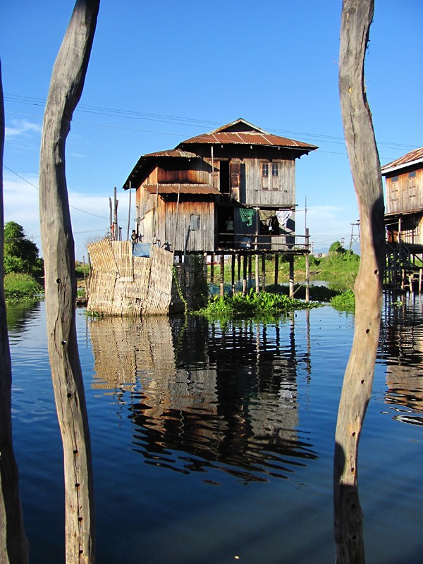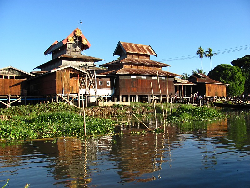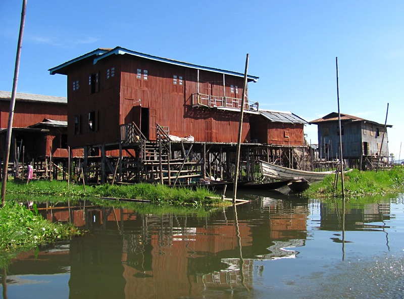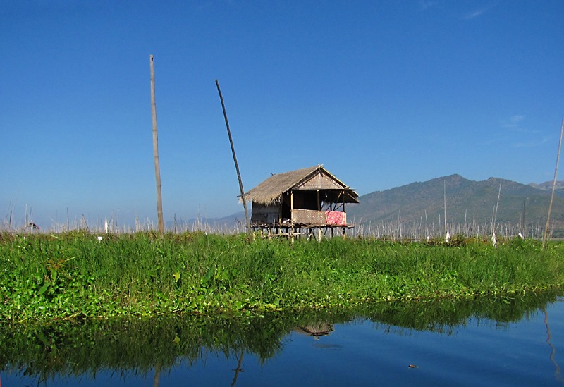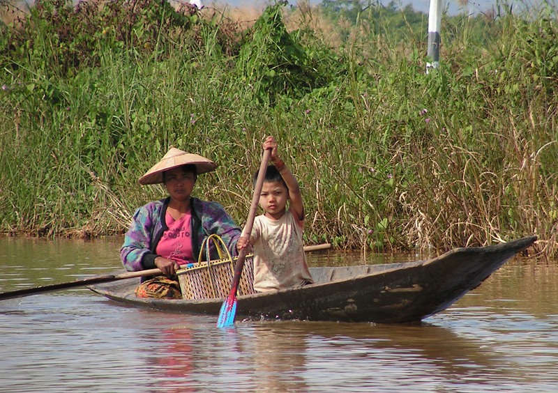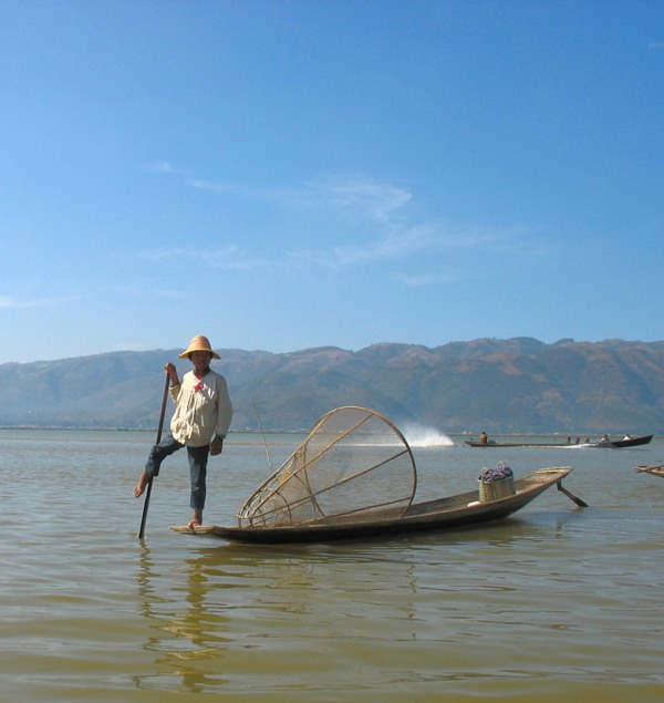 В Мьянме на озере Инле живет народность интха. У них свой забавный способ рыбной ловли и управления лодкой, обширные водные огороды и пагоды с тонкими шпилями.