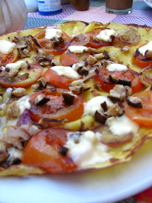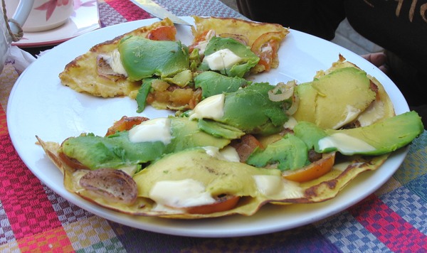 А этот с авокадо. Похоже на пиццу немного, но это блин.