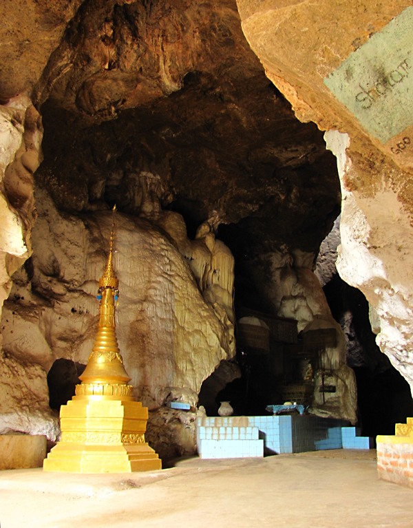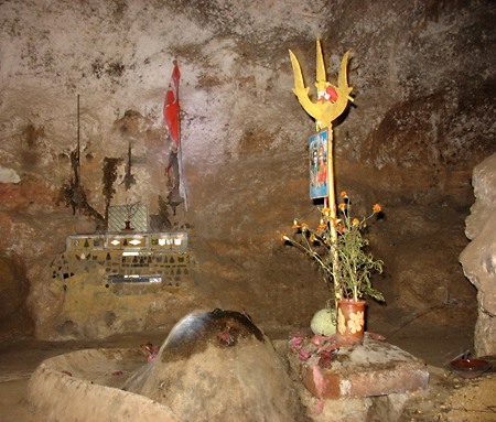 Основной зал достаточно большой, из него ведут несколько ходов дальше, в каждом по небольшой статуе. Много ответвлений в маленькие пещерки для медитаций. Храм очень простой, но все устроено очень практично и по делу. Помимо статуй Будды, мы встретили и лингам с трезубцем. Шиваиты тут тоже есть, Индия близко.