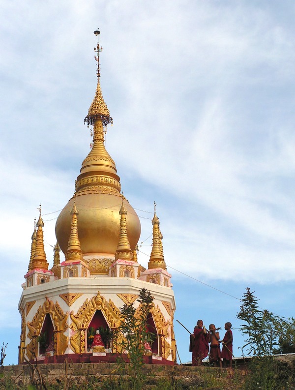 Туристы сюда забредают редко. Мы до сих пор не знаем, как называется эта деревня, никто здесь не говорил по английски. На одном из более современных храмов мы встретили надпись на латинице Htu Pein, но чье это название, так и не узнали.