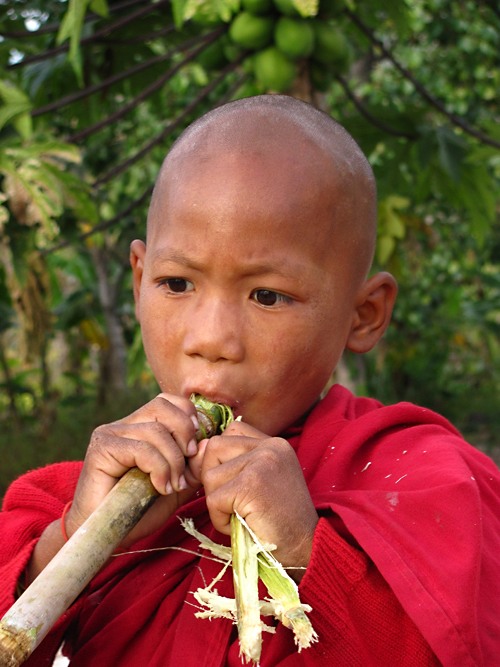 Мальчик грызет стебель сахарного тростника. Он ведь сладкий :-)