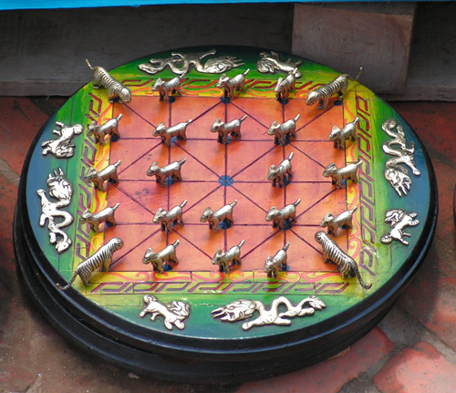 Непальская игра с тиграми и козами. Я, одурев от жары, в подробности не вдавалась, но девушки наши играли с продавцом, а по возвращении из Тибета ее купили.