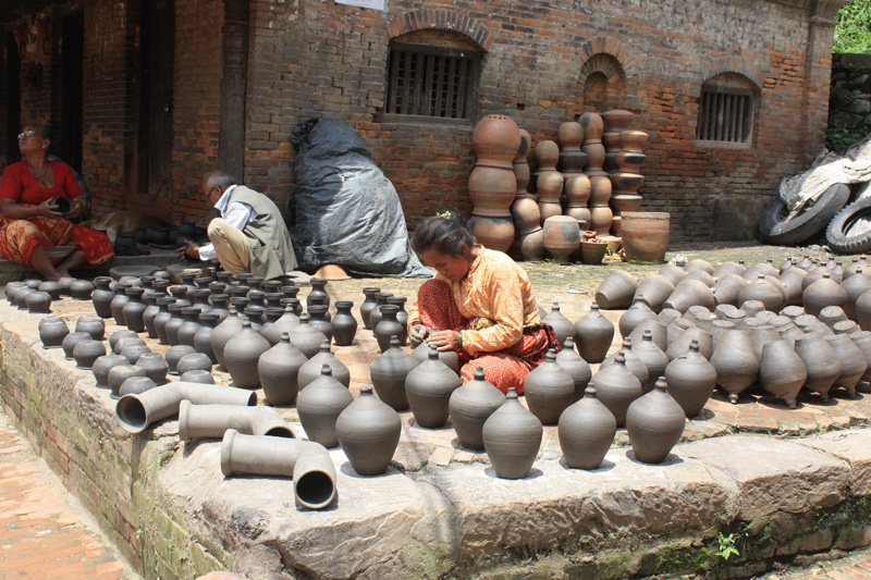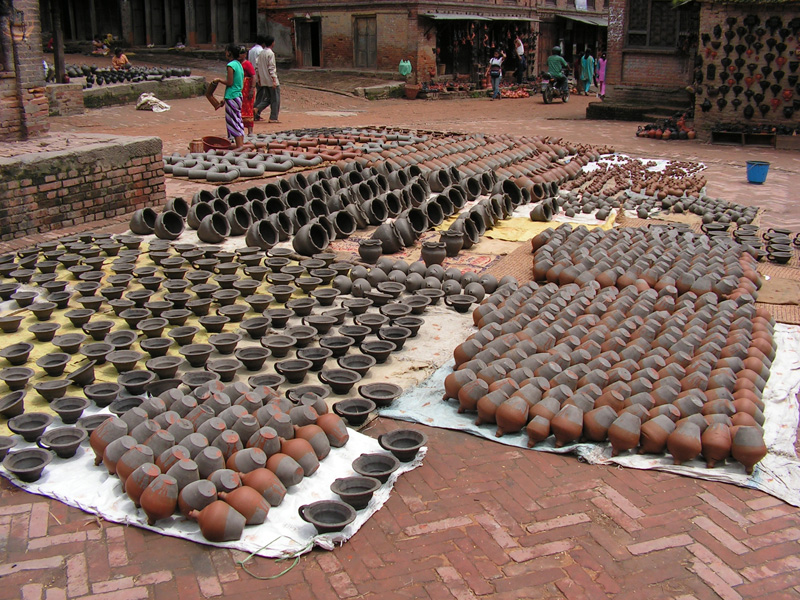 В Бхактапуре развито гончарное ремесло. Есть несколько площадей, на которых разложены горшки.