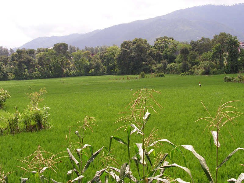 300 метров в сторону - и вот они уже заливные рисовые поля. Мне очень нравится их цвет, в сезон дождей он такой яркий, что даже мой фотоаппарат бессилен испортить впечатление.