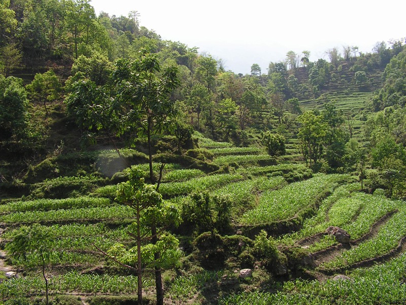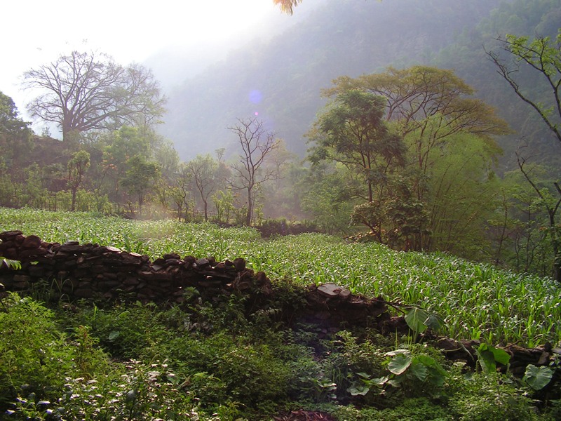 Мне ужасно нравится зеленый плюшевый Непал, с его аккуратными маленькими полями, стогами сена, зелеными изгородями. Уже в первый день я стала догадываться, что в случае нехватки времени предпочту трек к базовому лагерю Аннапурны, а не Тиличо, потому что это еще один повод полюбоваться буйством зелени.