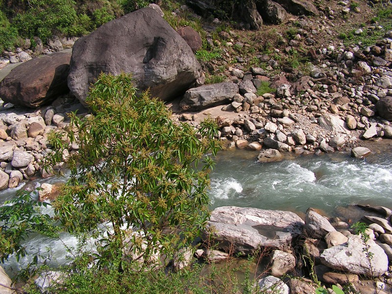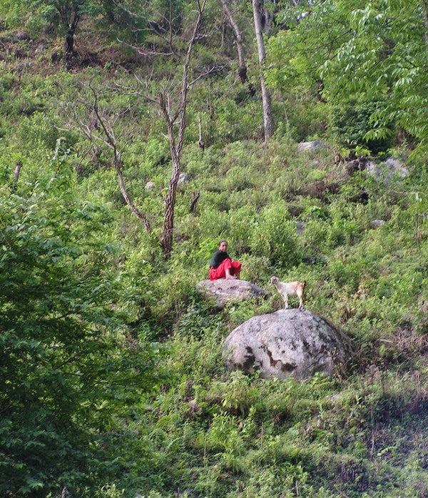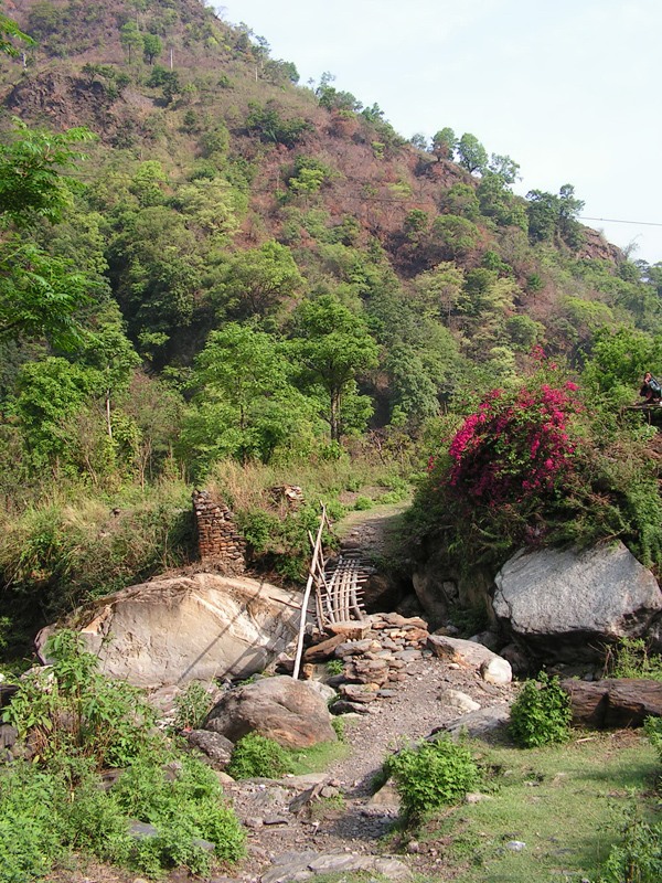 После обеда погода начала портится и мне стало очевидно, что будет дождь. В дальнейшем у нас появилось понятие "Three o`clock raining", потому что примерно в это время он и начинался. Выходили мы обычно в семь утра, поэтому к трем часам дня, как правило, были уже в пункте назначения. Но в первый день не успели, и нас немного намочило. Сантош хотел остановиться где-то возле Сьянге, не доходя до Джагата. Но там строили дорогу со всеми вытекающими и высыпающимися последствиями, поэтому я от этой перспективы отказалась: ты решил, что ночуем в Джагате, так иди, мы не из сахара.