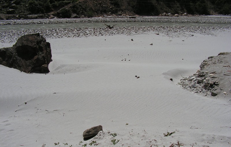 От Тала до Карте тянется весьма неприятный участок дороги. Сперва появляется серебристый песок со дна реки: