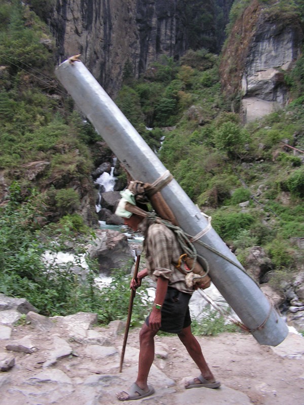 Пугающее зрелище. Когда портеры несут свои огромные корзины с поклажей или тюки литров в 200, это выглядит героически. Но когда 12-летняя девочка несет на голове мешок цемента, или хлипкий на вид мужчина несет такую трубу весом примерно с него самого, то это ужасает.