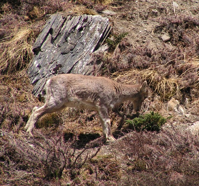 Близко подобрались к горным козликам. Козлик уперся и пытается отъесть кусок можжевельника. Можжевельник сопротивляется: