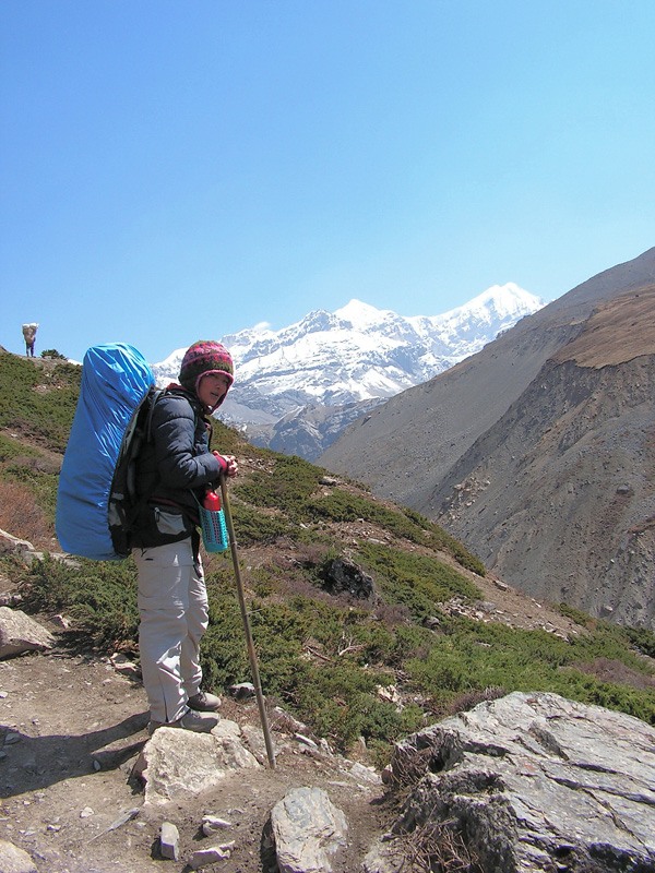 Симпатичная, аккуратно и добротно одетая, в фирменной курточке от "Трех сестер". Для непальской женщины ее заработок, наверное, очень внушителен. Да и по сравнению с портерами в шлепках, несущих огромные баулы экспедиций, выглядит очень хорошо. На треке к базовому лагерю Аннапурны мне попались на пути еще несколько женщин-портеров из этого агентства. До этого я о них только в лонлике читала, думала, это такая экзотика.