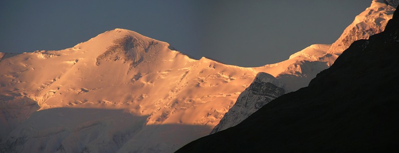 Утром, как обычно, я встала в пять часов и фотографировала окрестные горы. Отсюда Гангапурна выглядит уже совсем по-другому: