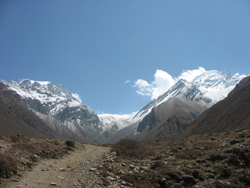 Стоило нам собраться и отойти немного от перевала, как краски мира померкли, звуки утихли и не осталось ничего, кроме боли и необходимости двигаться вперед. Диакарб был уже съеден, от обезболивающих таблеток проку не было. Оставалось только спускаться. Через некоторое время я сказала Сантошу, что дело плохо. Надо отдать ему должное: он сделал все, что мог и все, чем вообще можно было мне помочь. Мой гид забрал у меня маленький рюкзак и таким образом разгрузил меня полностью, а потом мягко, но настойчиво гнал вниз, не давая останавливаться. И несмотря на все мои претензии, я об этом помню и благодарна ему: правильное поведение наверху дорогого стоит, а внизу можно и характер показывать.