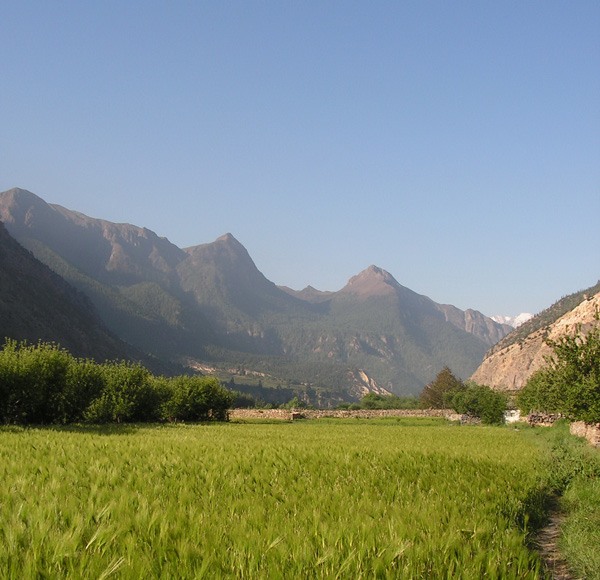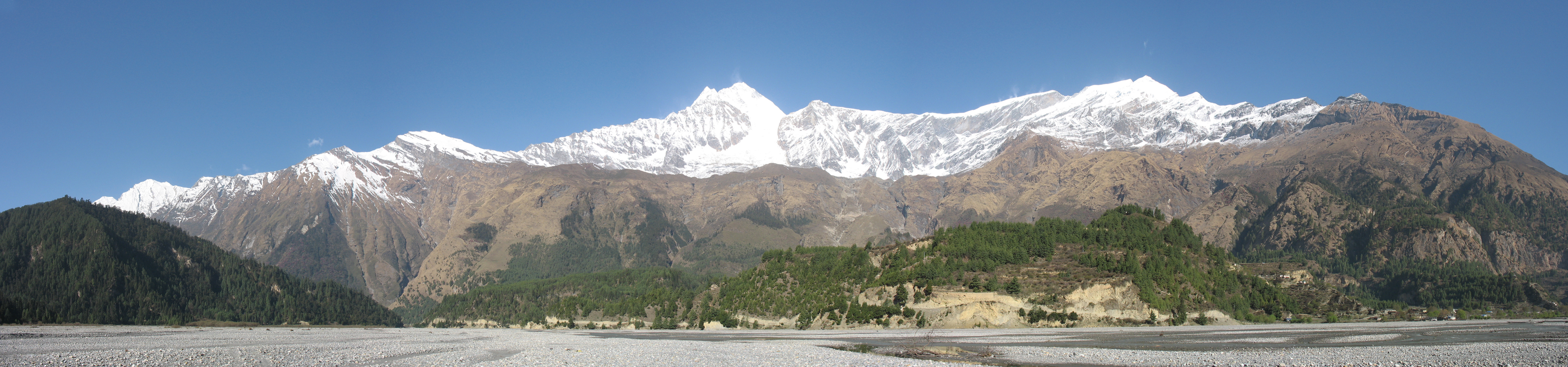После выезда из Ларджунга. Посредине гора Дахуалагири: