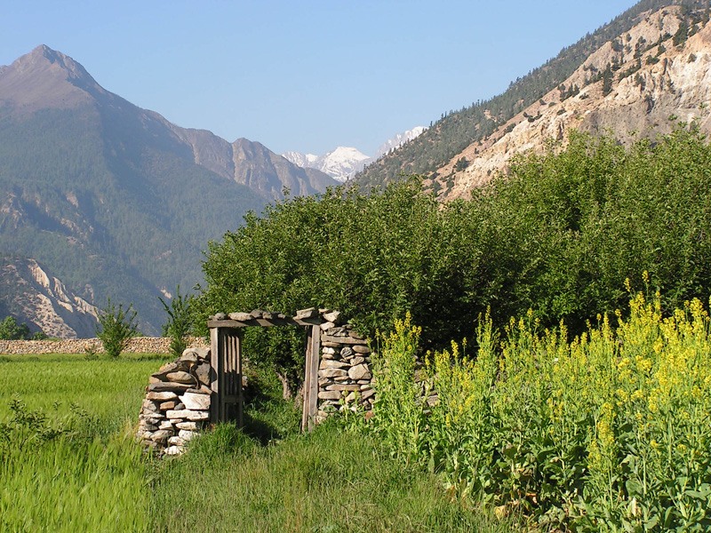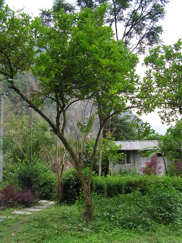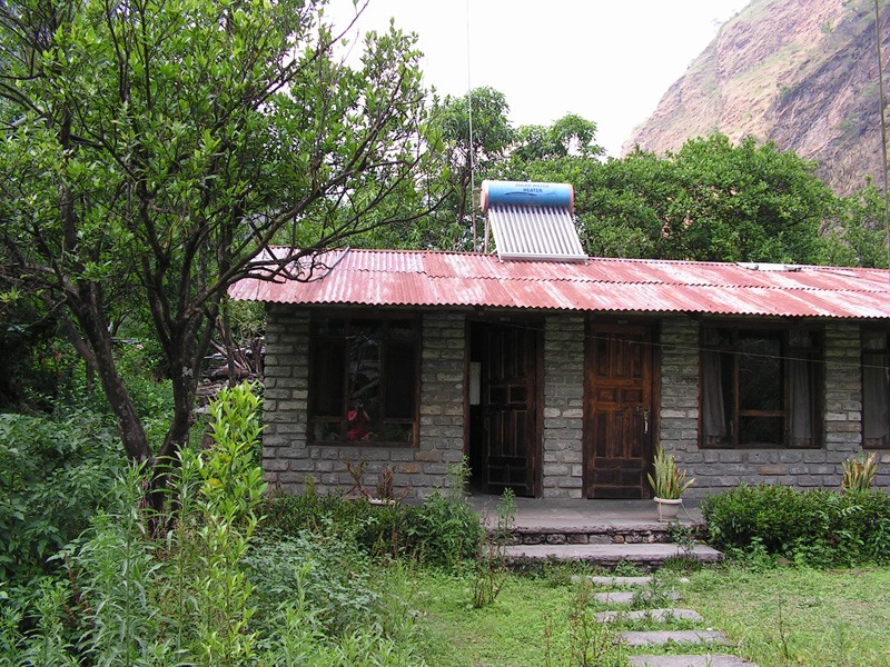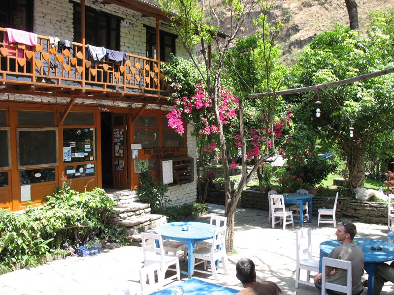 Лучшее место для поселения в Татопани - Dhaulagiri lodge, лесенка наверх ведет прямо от источника. Домики стоят в цитрусовом саду, и я весьма рассчитывала устроить охоту за цитрусами.