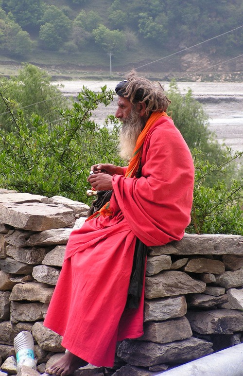 С нами в автобусе ехал садху. Настоящий, не то что те ряженые клоуны, что сидят в центре Катманду или на ступенях Пащупатинатха и трясут деньги из проходящих. Этот садху возвращался из паломничества в Муктинатх и вел себя ненавязчиво и приветливо: