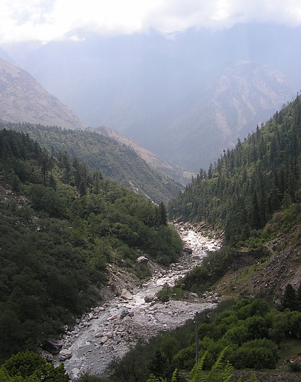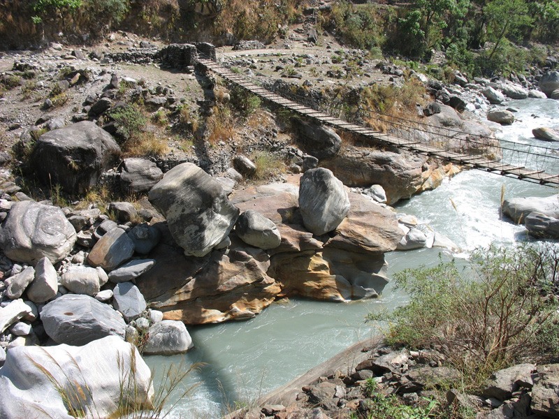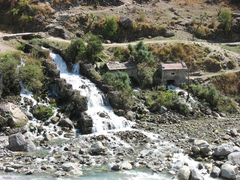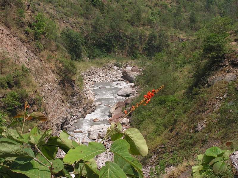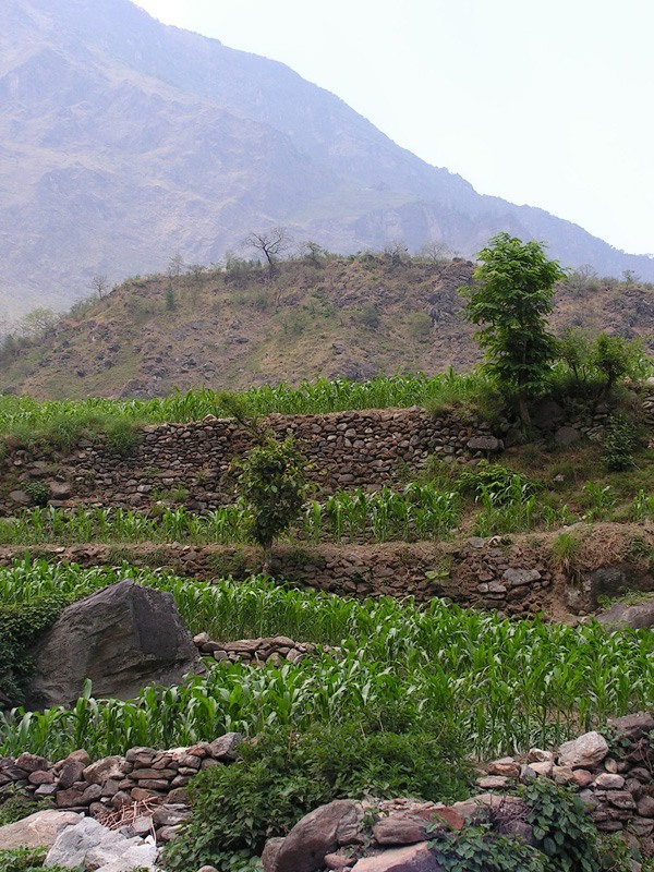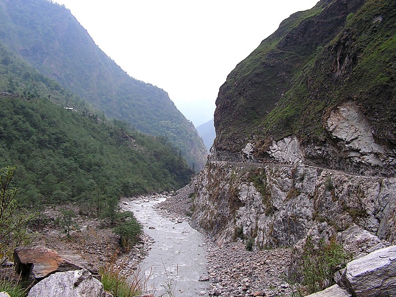 В Гхасе мы пообедали и дальше пошли пешком. На перегоне Гхаса-Рупсе Чхахара случился очередной обвал и автобусы не ходили. Идти было легко и приятно - дорога ровная, в основном под гору. Обвал был совсем небольшим и особо дорогу не заслонял. Дорога красивая, эта долина немного похожа на долину Бхоте Коси: