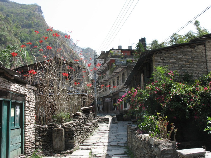 Трехдневный путь до Татопани я решила проехать за один день. Не нравилось идти пешком вдоль автодороги. Можно переправляться на другой берег Кали Гандаки и дорогу частично обходить, но мне очень хотелось убраться от нее подальше. Поэтому накануне были заказаны билеты на автобус до Гхасы за фантастическую стоимость в 600 рупий для меня и 300 рупий - для Сантоша.