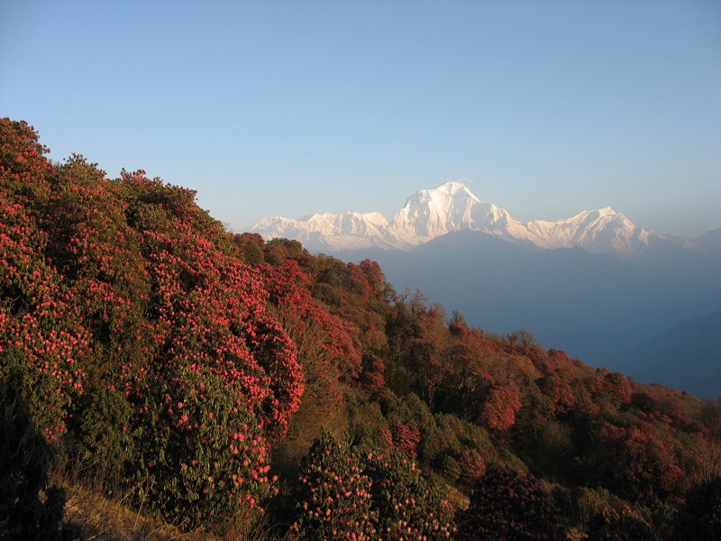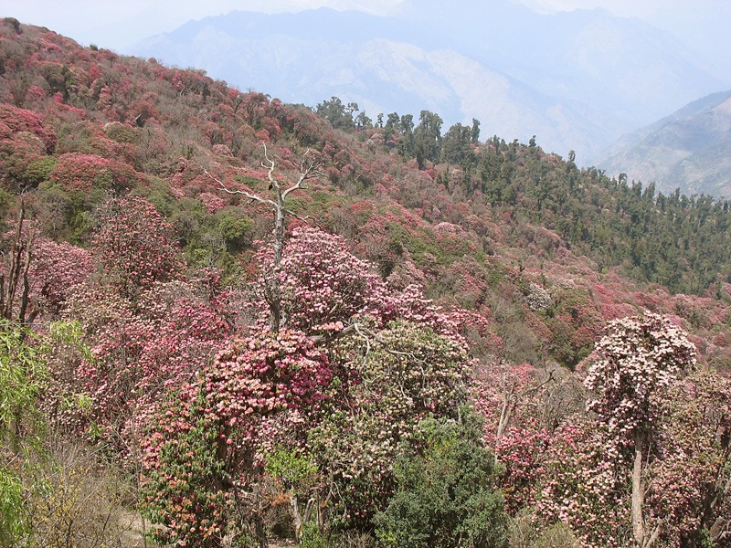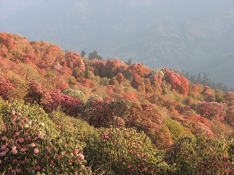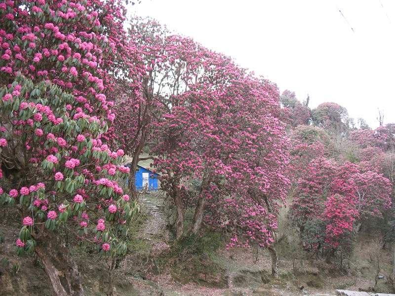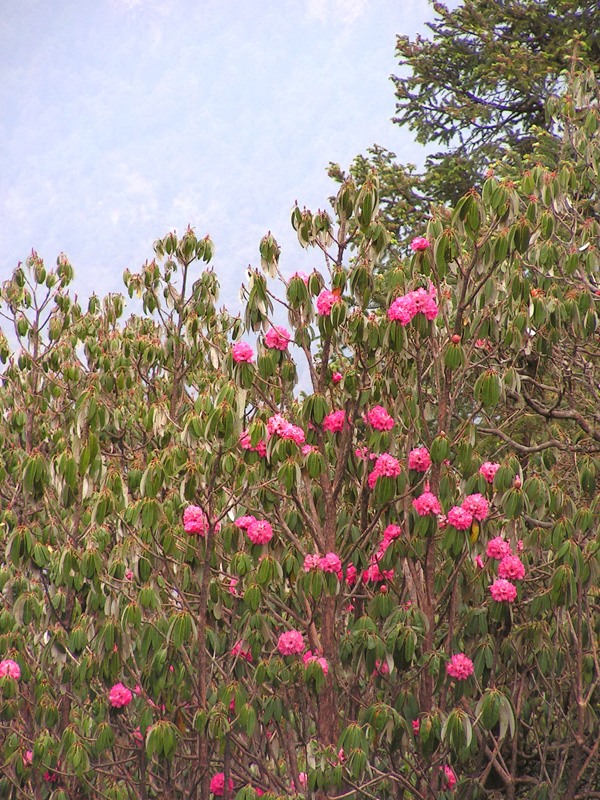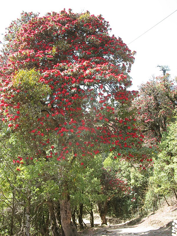 Рододендрон на непали - лалигураса. Я считаю, что это имя подходит таким роскошным цветам гораздо больше греческого. Оно такое же вкусное, как "лалигурасовый сок": если вытрясти из середины цветов росу и выпить, она сладкая и душистая. Поэтому дальше я буду их так называть.