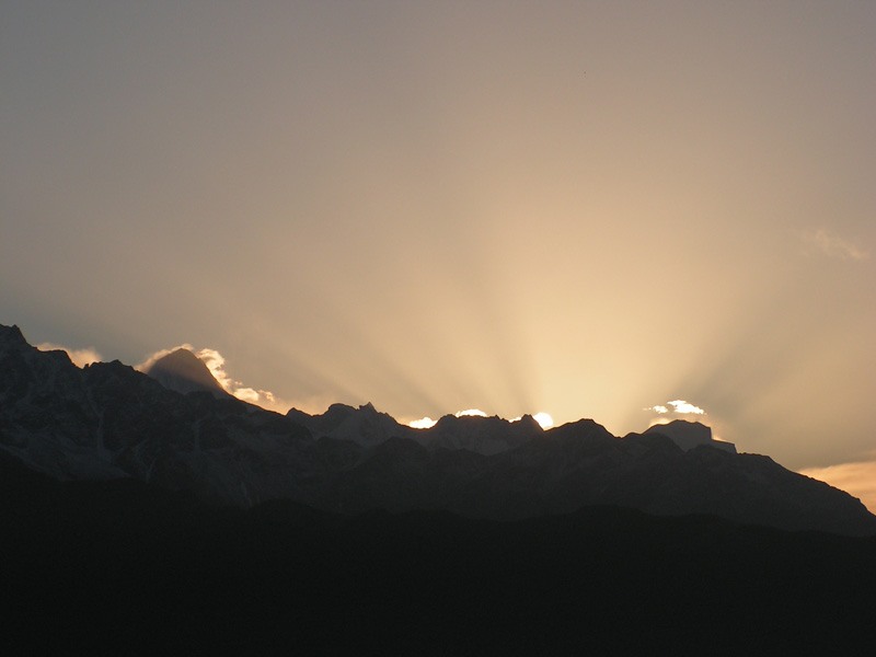 Перезимовав суровую ночь в Тадапани, утром я вместе с японцами встречала рассвет за тем же самым столом. Солнце вставало за горами, поэтому виды были непривычными: